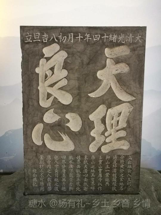 濯水古镇有一块石碑,碑上刻有“天理良心”。此碑立于清光绪十四年(公元1888年),高约1米、宽约50厘米,意在警示商贾们经商时的为人之道。