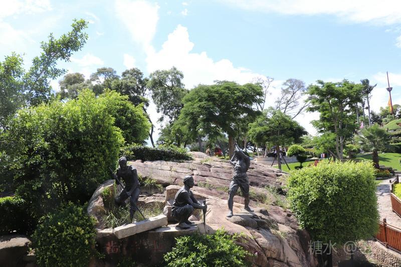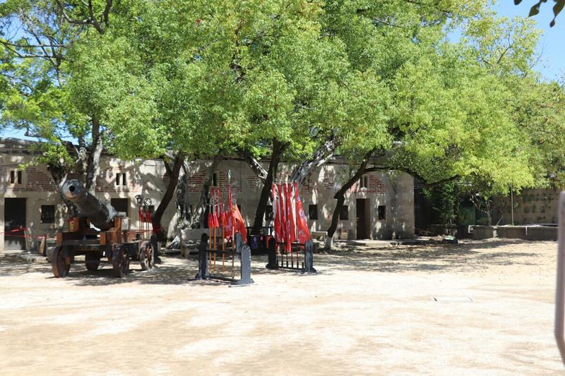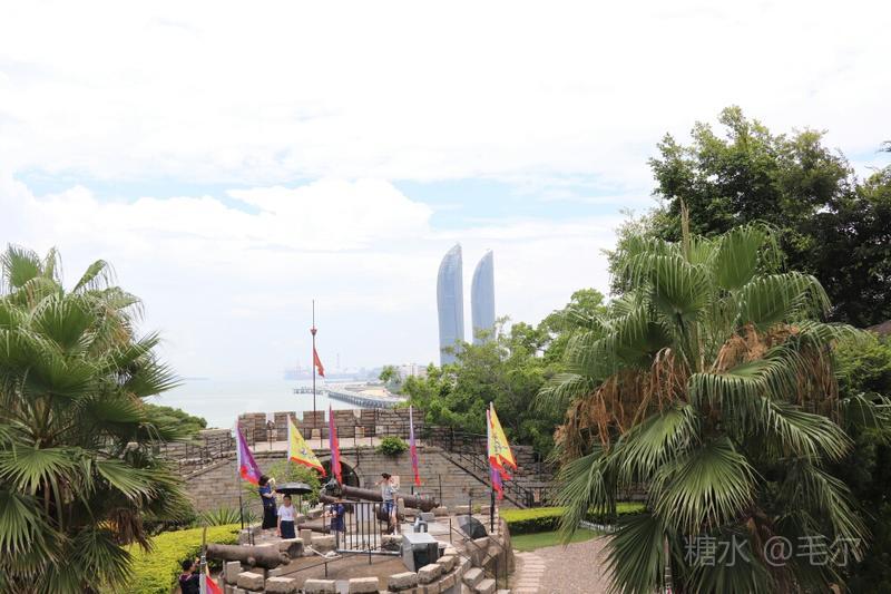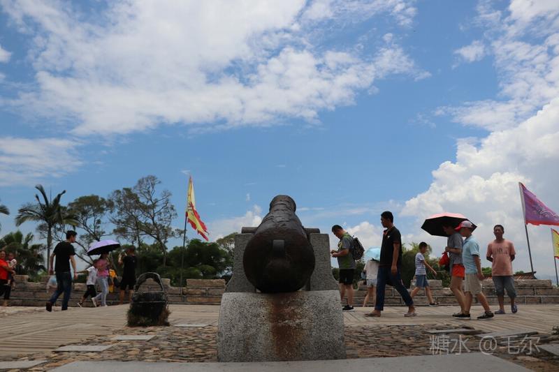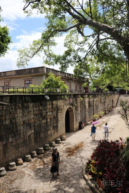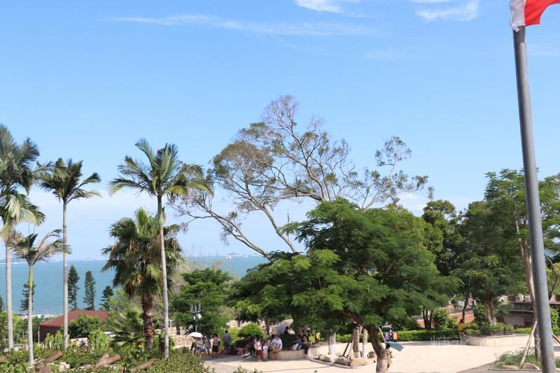 顺城墙而游,古堡被古榕,相思树所掩,城墙上下互通,战壕内外相接,城中有城,门内有门。登高望远,面朝大海,天蓝海蓝风光好。