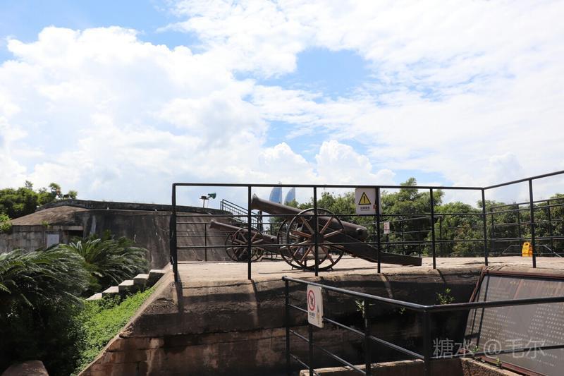 胡里山炮台方园尖锐,顺因地势,采用花岗石条建造,并以乌樟树汁和石炭,糯米拌泥沙夯筑而成,坚固异常。结构为半地堡式,半城恒式,具有欧洲风格,又有明清建筑风韵。步入胡里炮台,沿级而上,一路大小火炮各异甚是威严。登上城头,迎面就是厦门人气最旺的白城沙滩,厦门标志性建筑双子塔。