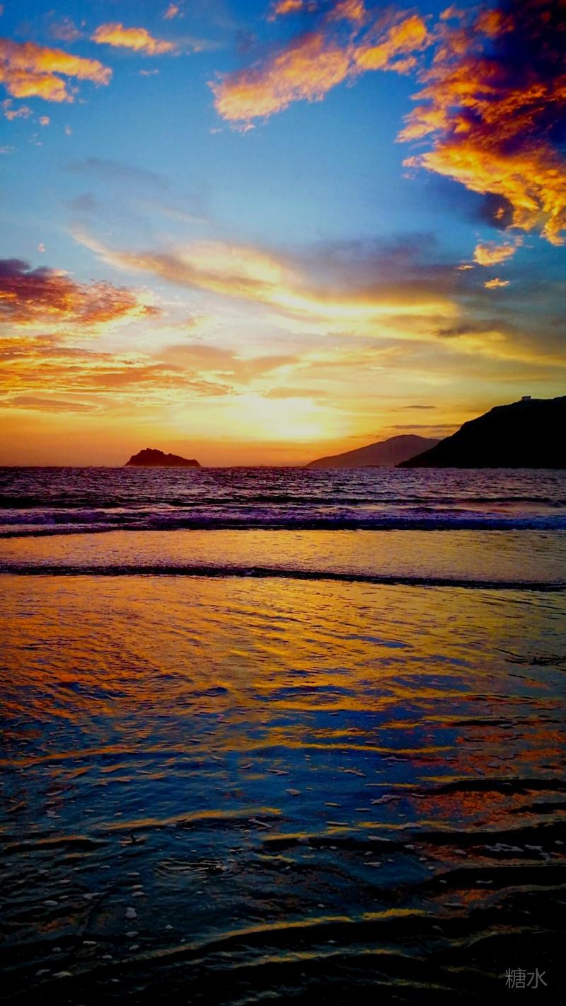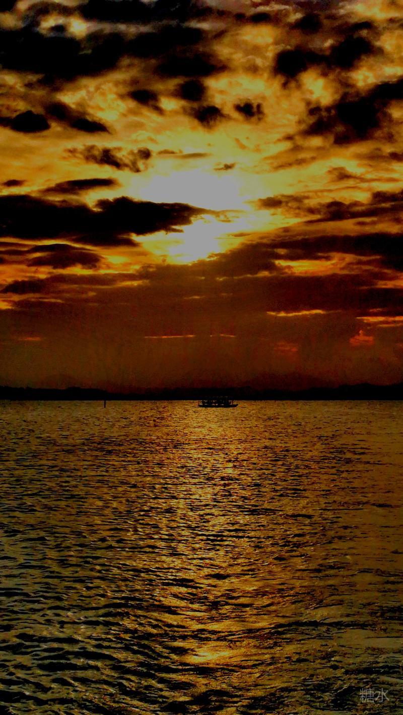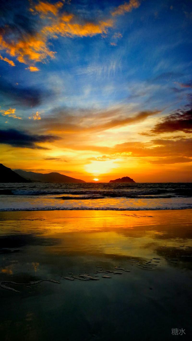 日落潮涌云霞碧,能不热血燃