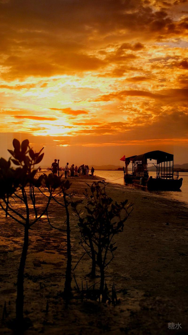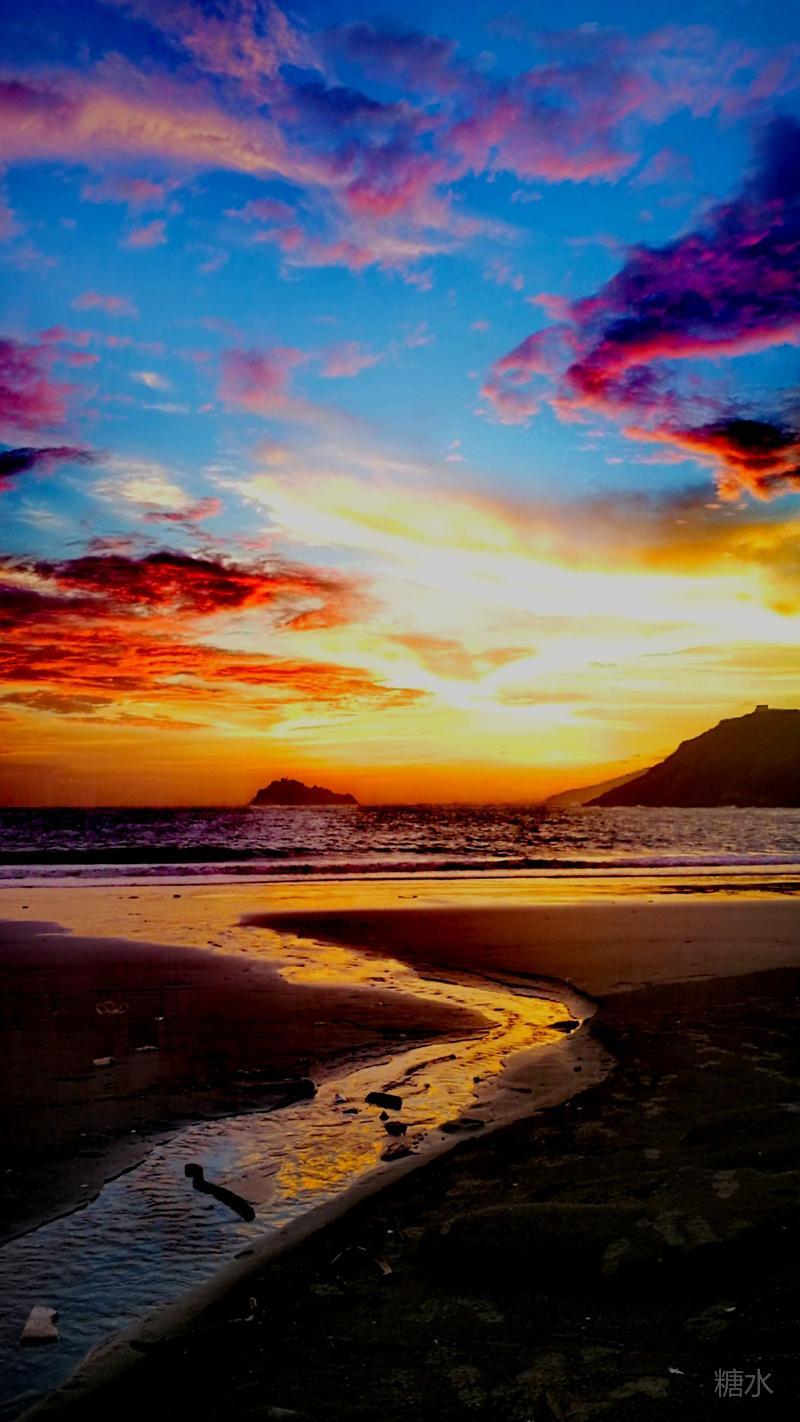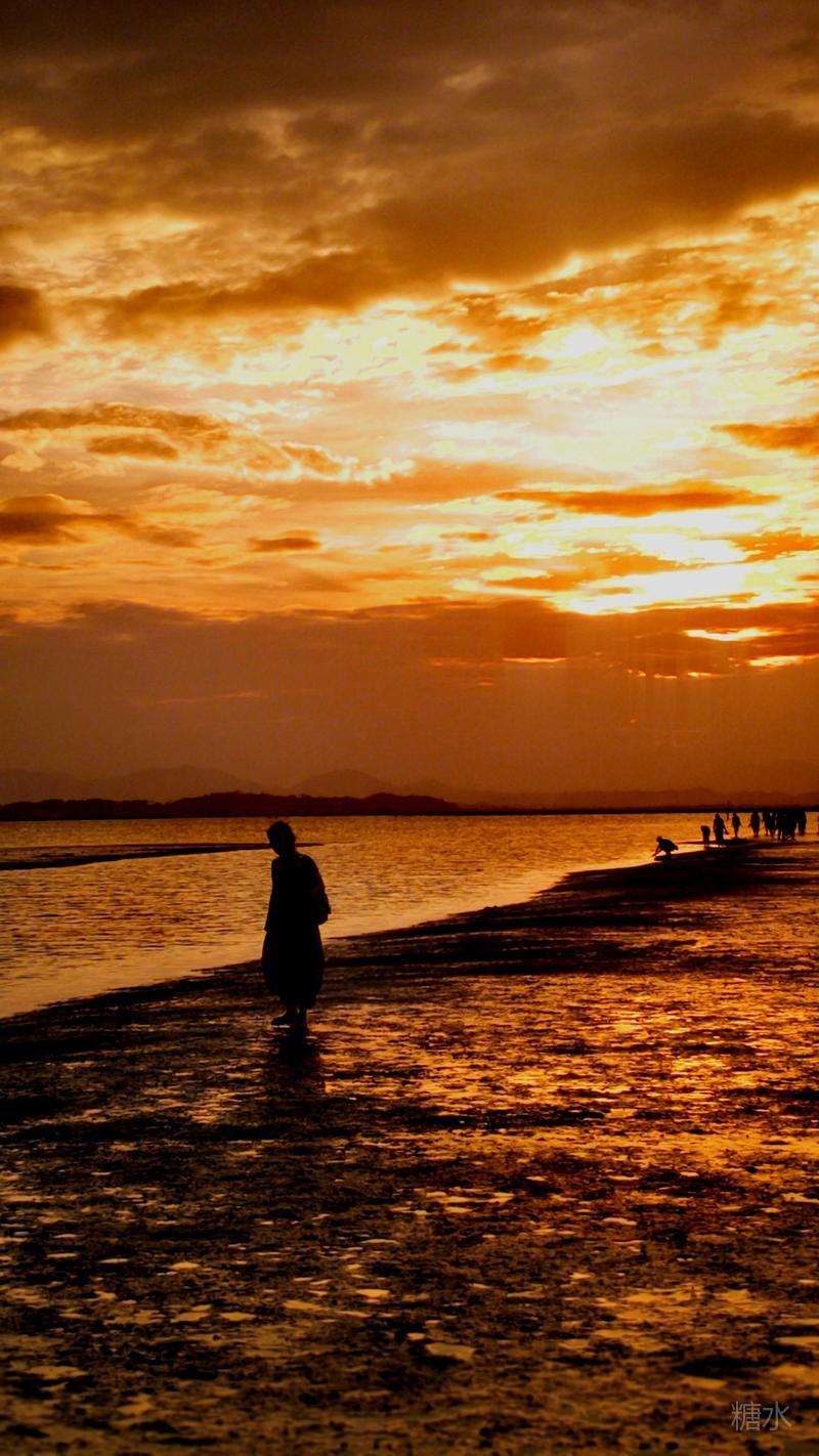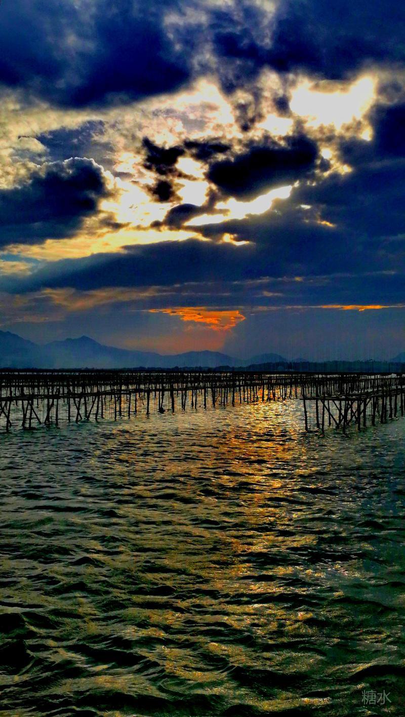 日落潮涌云霞碧,能不热血燃