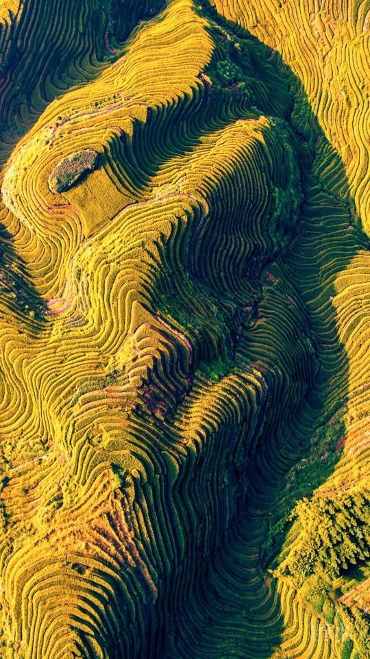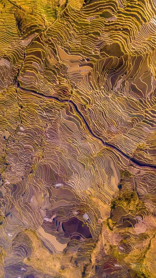 广西龙脊梯田,层层叠叠上远山,蜿蜒逶迤绕云间。