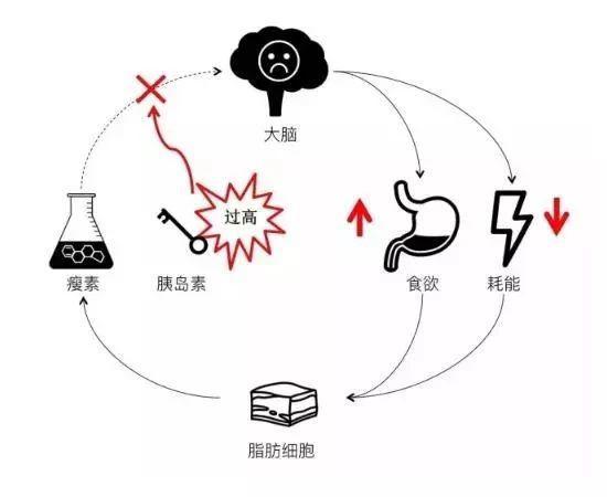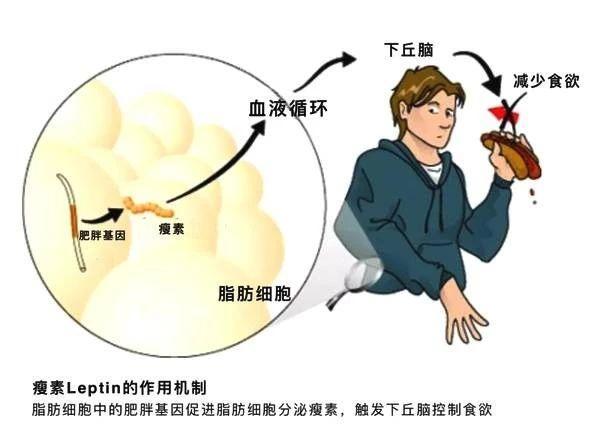 瘦素对体重的影响 ①抑制食欲:瘦素可使人类进食明显减少,体重和体脂含量下降; ②增加能量消耗:瘦素可作用于中枢,增加交感神经活性,使大量贮存的能量转变成热能释放; ③对脂肪合成的影响:瘦素可直接抑制脂肪合成,促进其分解,也有人认为可促进脂肪细胞成熟; ④对内分泌的影响:胰岛素可促进瘦素的分泌,反过来瘦素对胰岛素的合成、分泌发挥负反馈调节。 总言之,只要体内瘦素浓度增加,就会抑制食欲,刺激新陈代谢,让人少吃一点东西;反之瘦素含量如果降低,就会令人想多吃一点东西,新陈代谢率亦会减慢。 为什们越减越肥? 看到这里肯定会有人认为,自己控制不住海吃胡塞,肯定是因为体内瘦素太少了,所以给身体内注射瘦素,就会控制住食欲,慢慢变瘦。很可惜,只有少部分肥胖者会有体重下降的反应。