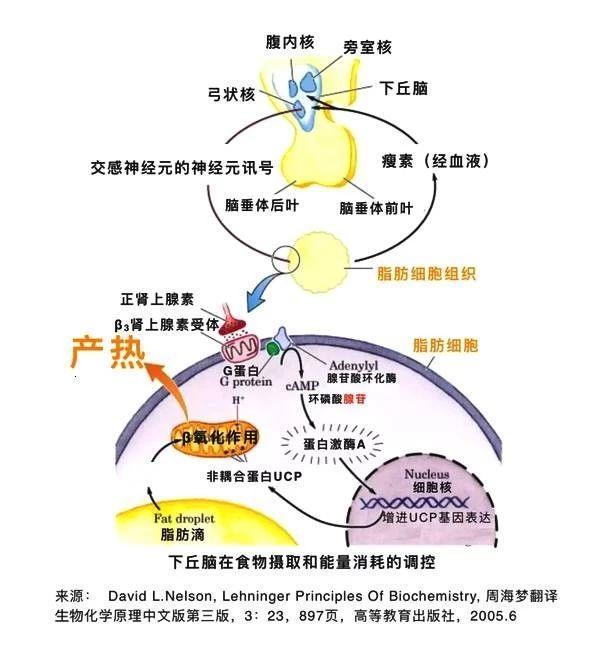 瘦素(Leptin) 瘦素是一种激素,由自身体脂肪细胞分泌,通过血液輸送到大脑饮食控制中枢的神经元,瘦素有许多功能,可以调节饥饿感和饱腹感,控制和调节脂肪细胞大小以及新陈代谢,一旦大脑收到瘦素的信号,就会通知下丘脑控制中枢表示已经饱了,但在饥饿状态下,瘦素数量会降低,并作为信号通知集体保存能量。