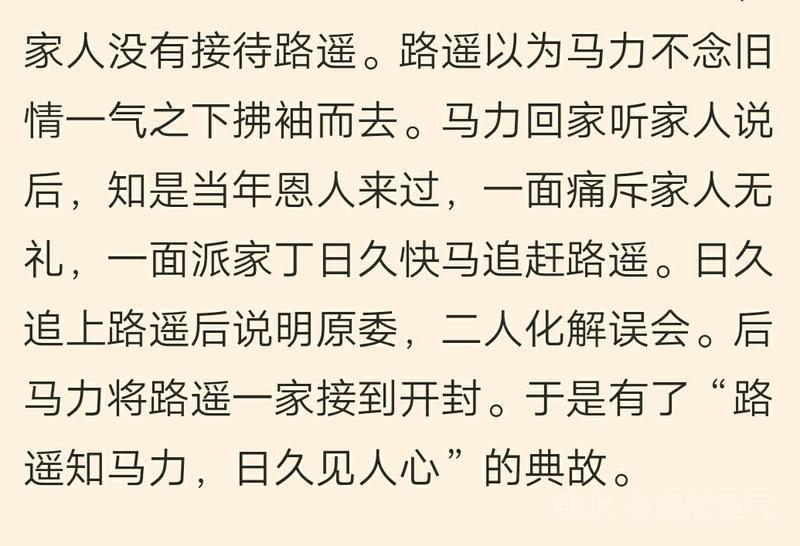 导讀:路遥如马力,日久见人心,这是历史名句,成为中华的历史典故,看似经常用到的名句成语谚语,然而还有许多年轻人一知半解,似懂非懂,这个典故的历史渊源来历如何形成? 这个历史典故教人深刻的道理,时间是一把衡尺,丈量每个人的品德,岁月是一面明镜,照亮每个人的真伪,人生的征途起伏不平,見证每个人的品德真假是非,受益匪浅。 这个典故其实有多个版本,现在举三个版本分享解读历史典故与友共赏。