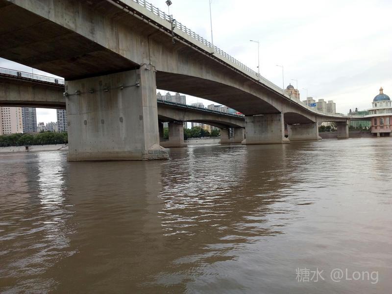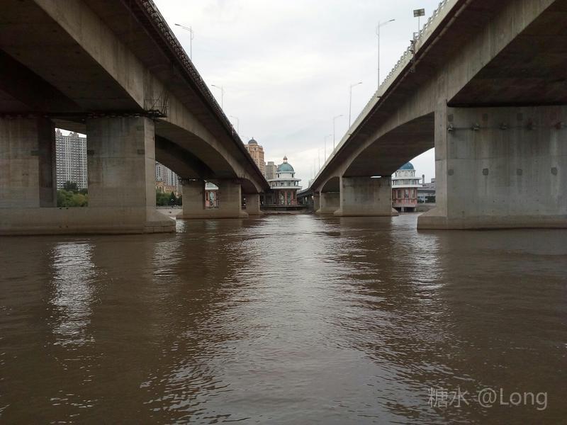 继续我们的游船航程,不远处是松花江铁路大桥。