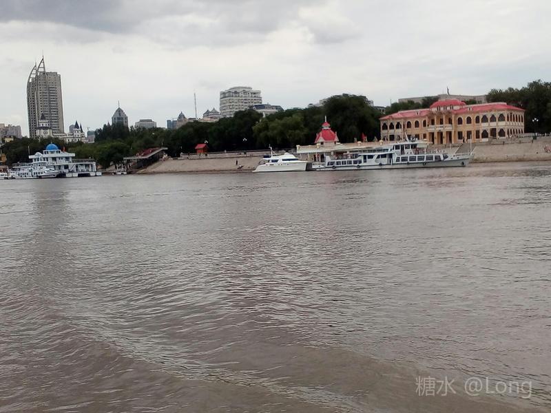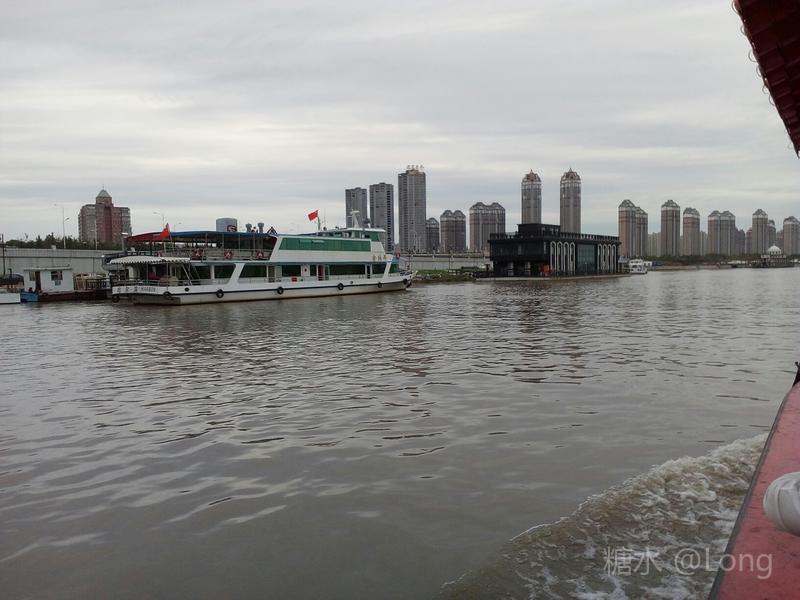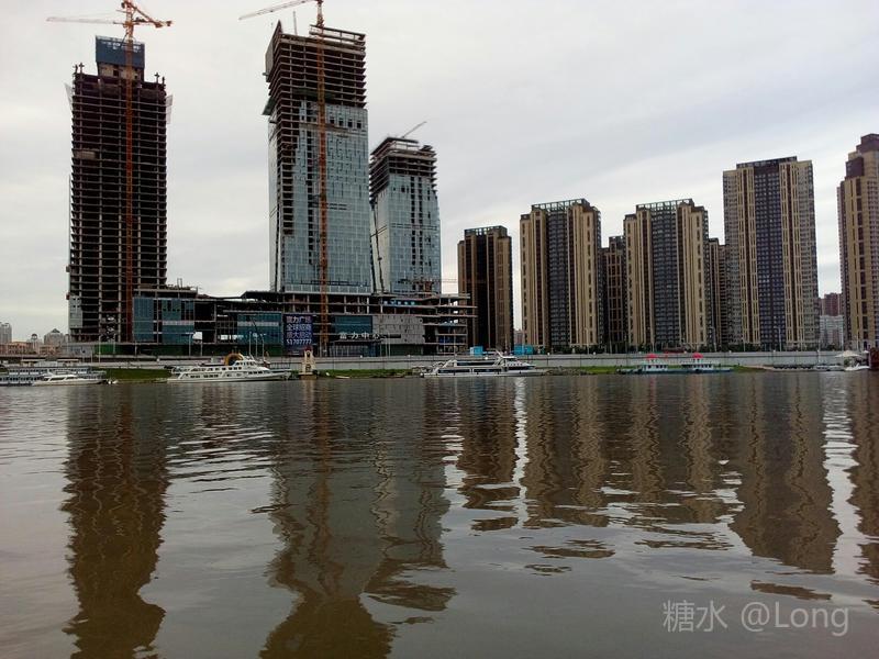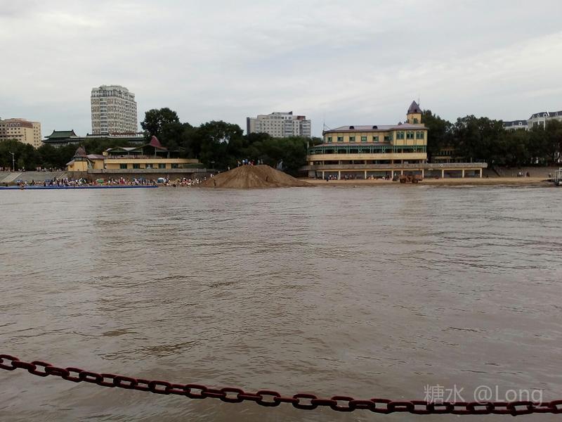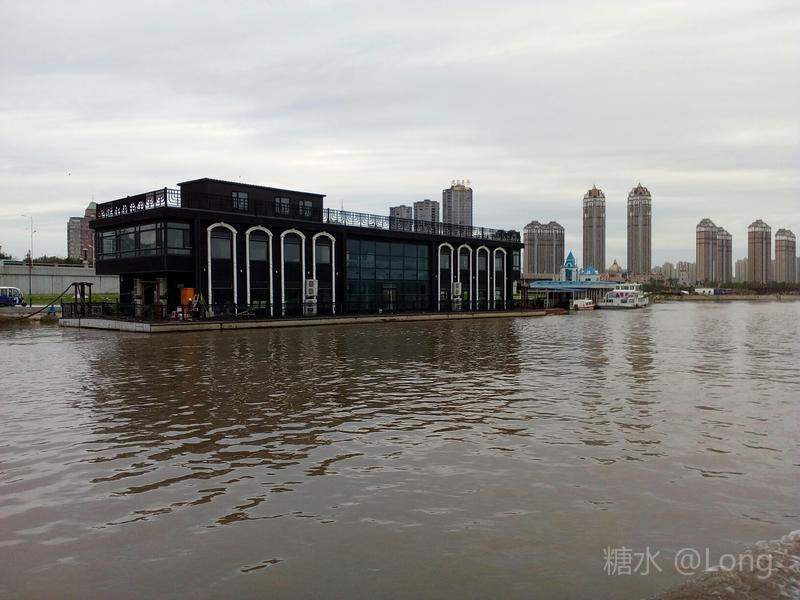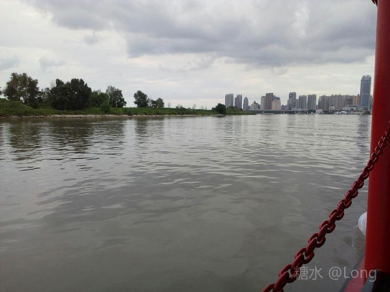 经常乘船过江,但单独游江还是第一次,1980年代也曾游过江,但记得那是去老山头游览。乘船游览松花江其实是一个不错的旅游项目,因为这是从另外一个角度接触和观察这个城市,从江上的角度。比如这次游览,从道里防洪纪念塔开始,游到群力,再返回。而这是群力新区已经开发后的线路,如果是开发前,群力就是荒草地,滩涂,岸上看到的就是这些。现在,以松花江为线,把道里多个点连接起来了,比较好玩。是否还有别的游江项目,就不得而知了,比如从防洪纪念塔游览到道外,或者从道外游览到群力。总之,人们喜欢乘船,喜欢沿江游览,而不仅仅是把船看作是一种交通工具。