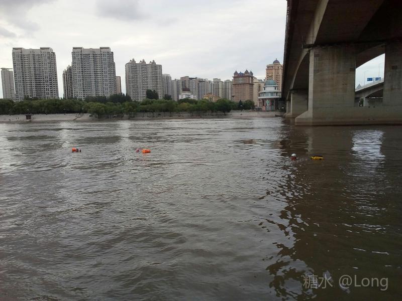 进入桥下,有游泳者,可惜这里岸边的天际线比较差,不知松花江两岸建设是否有天际线的要求。