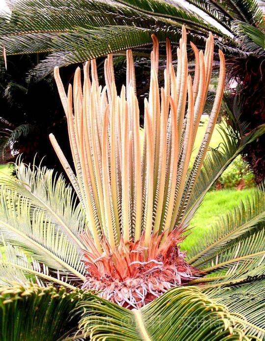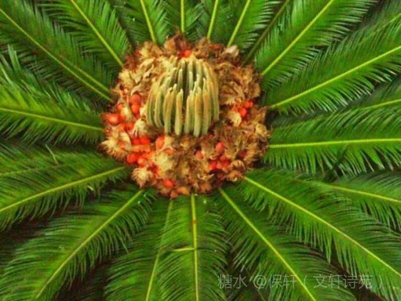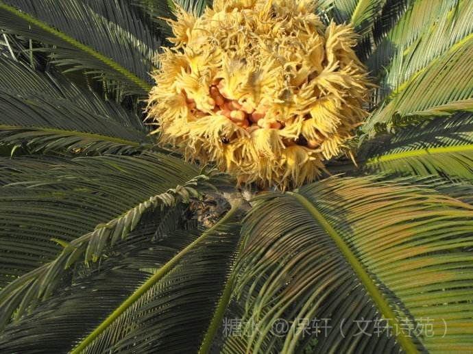(一)千年花自开 千年历尽花自开, 铁树天姿美艳来。 花骨雌雄人欲醉, 归来秋月自徊徘。