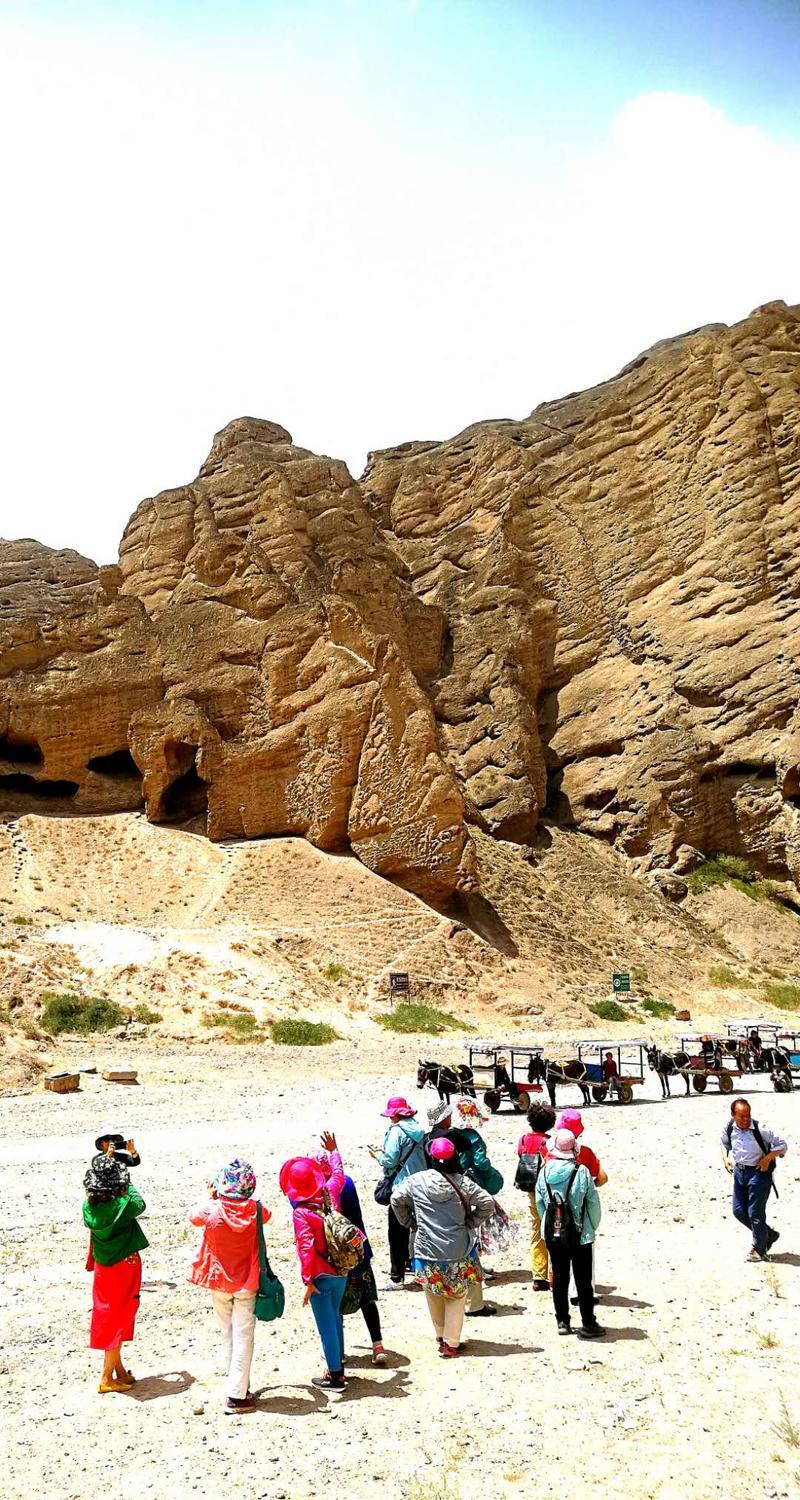 驴车队在饮马沟内缓缓前行,两边陡崖凌空,景象万千,峰回路转,步移景变。我们坐在车上,拍照着,交谈着,就像来到了影视剧的现场里,畅谈感受体会。