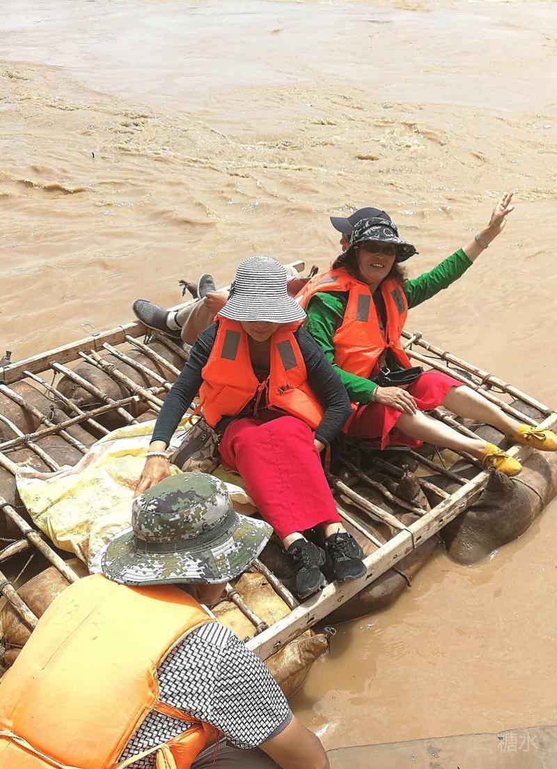 第一次踏上摇摇晃晃的羊皮筏子木框,头一次坐在木框上的简易坐垫,随着摇摆不定而又顺流漂流的羊皮筏子,有几分忐忑,又有几分刺激,心里感觉怪怪的。