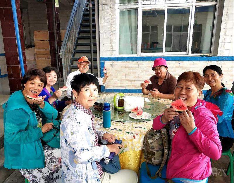 到达龙湾绿洲了,许多宾馆、四合院民房座落其中。临近中午,我们就在一家四合院里愉快就餐。