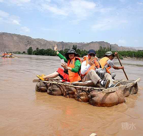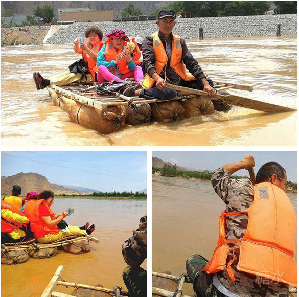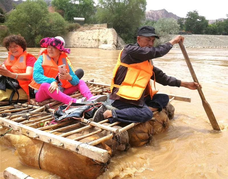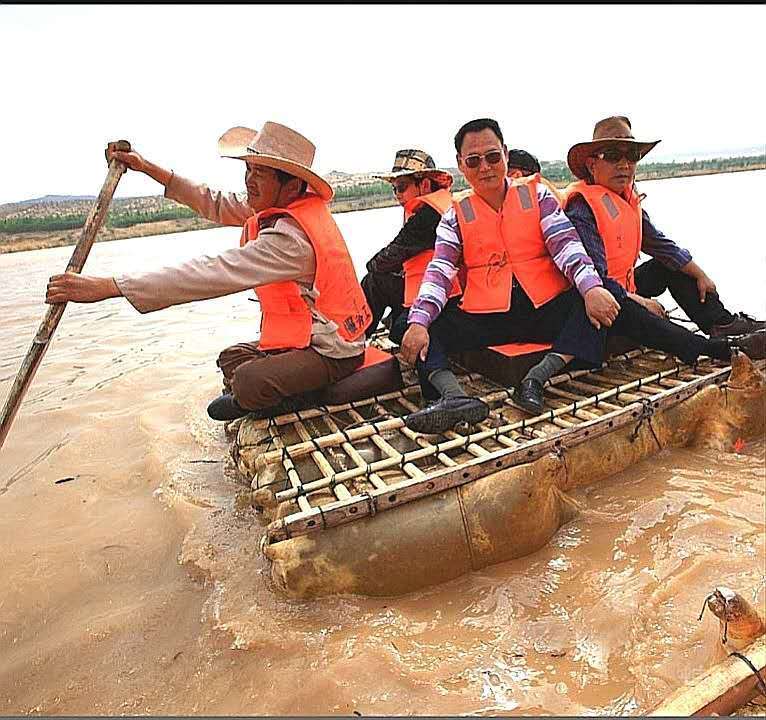 皮筏浮游,黄水奔流。在与大自然的长期斗争中,我国劳动人民表现出许多的聪明智慧。利用刷漆处理过的羊皮充气筏子,是横渡黄河最传统的古老工具,有着千百年的历史。过去只是从艺术作品里听到或见到,今日亲身体验,自然感慨万分。