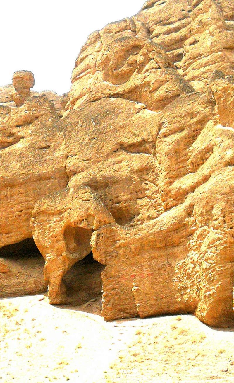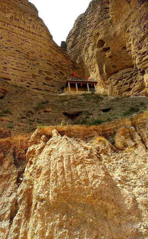 由于这片黄河地质是积沙砾岩,在雨洪、重力等外力作用下,积沙砾岩出现了各种形态的峭壁、岩柱,令人称奇。