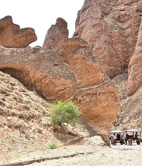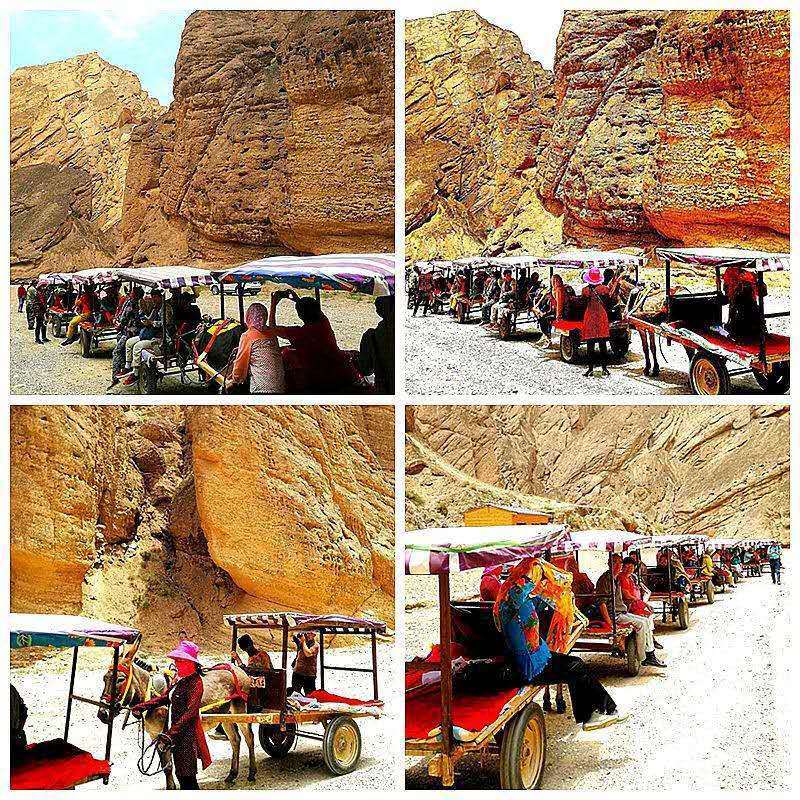 午后的大峡谷里,荒凉、干燥、闷热,九公里长的路程,而乘“驴的”这种古老的车辆走进去,不仅能亲密接触千姿百态的石林奇观,而且别有韵味。 因此在不用卡丁车或直升机游览的情况下,我们最佳的交通就是第五种方式——“驴的”。