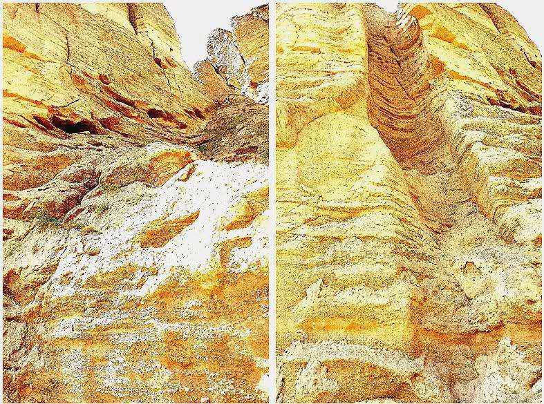 拍照匆匆而过的山岩,组合成图进行对比欣赏。