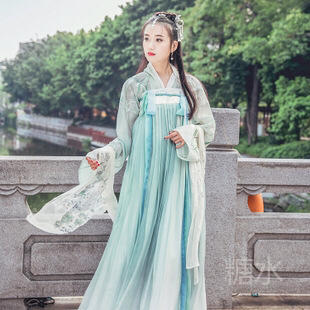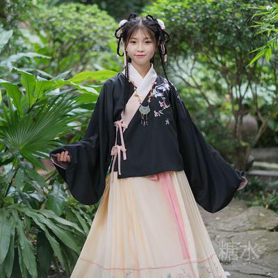汉服魏晋风浅交领襦裙:大袖衫齐腰襦裙
