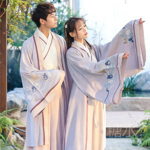 女装在早期和男装类似,也穿深衣,后来则以襦裙为主。汉族各朝服饰某些地方有些不同,但主体部分相同。西汉的深衣和明朝的汉服基本式样是相同的,只是在细枝末节上不同。 春秋战国时期,服饰大致沿袭商代的服制,只是略有变化。衣服的样式比商代略宽松,衣袖有大小两式,领子通用矩领,没有扭扣,一般在腰间系带,有的在带上还挂有玉制的饰物。当时的腰带主要有两种:一种以丝织物制成,叫“大带”或叫“绅带”;另一种腰带以皮革制成,叫“革带”。这时出现了曲裾深衣,与其他服装相比,除了上衣下裳相连这一特点之外,还有一明显的不同之处,叫“续衽钩边”。“衽”就是衣襟,“续衽”就是将衣襟接长,“钩边”就是形容衣襟的样式。它改变了过去服装多在下摆开衩的裁制方法,将左边衣襟的前后片缝合,并将后片衣襟加长,加长后的衣襟形成三角,穿时绕至背后,再用腰带系扎。 秦汉时期曲裾深衣不仅男子可穿,同时也是女服中最为常见的一种服式,这种服装通身紧窄、长可曳地,下摆一般呈喇叭状,行不露足。衣袖有宽窄两式,袖口大多镶边。衣领部分很有特色,通常用交领,领口很低,以便露出里衣。如穿几件衣服,每层领子必露于外,最多的达三层以上,时称“三重衣”。另外,汉代窄袖紧身的绕襟深衣。衣服几经转折,绕至臀部,然后用绸带系束,衣上还绘有精美华丽的纹样。