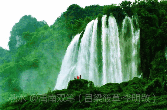 日照香炉生紫烟, 遥看瀑布挂前川。 飞流直下三千尺, 疑是银河落九天。 (唐):李白诗