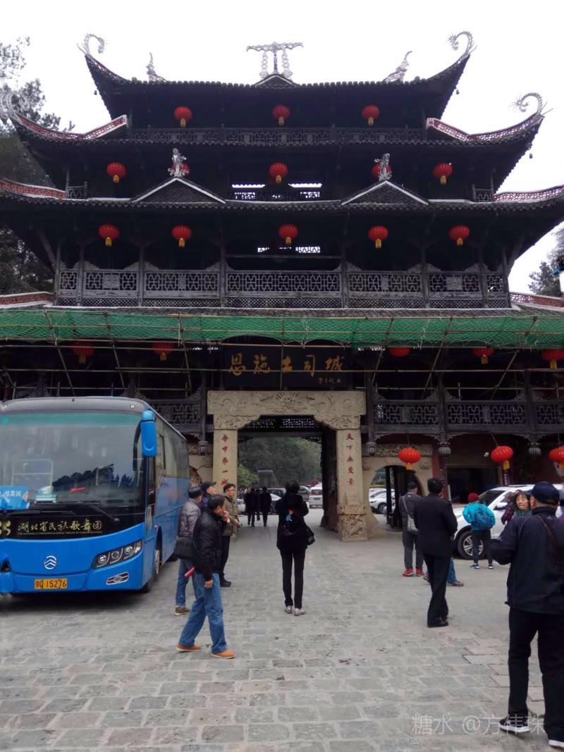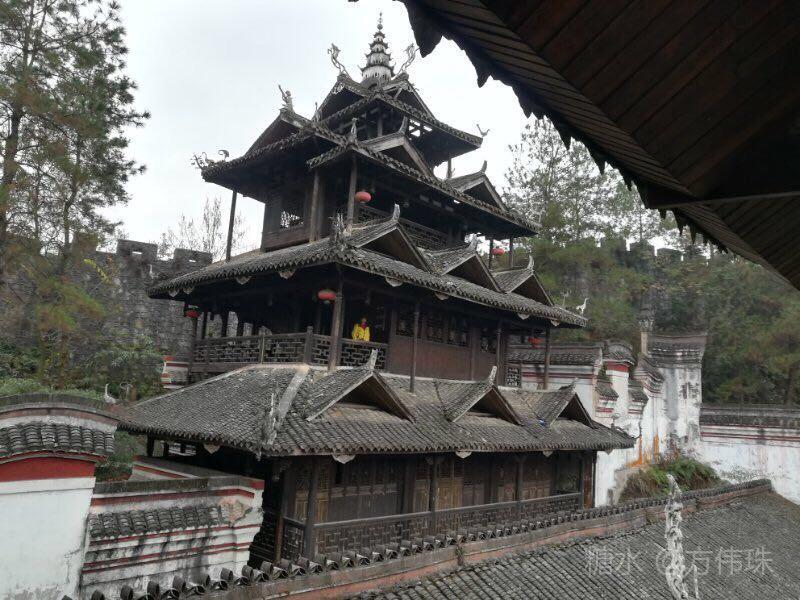 游完了黄鶴桥峰林,我们又来到了恩施土斯城门楼也称土司朝门或看楼,是显示土司威夷和功德的纪念性建筑。门楼高25米,宽12米木质结构,高大壮观,布局精巧合理,两边走马转角楼梯可以盘旋至顶,层层相通相连,楼中陈列了恩施古往今来的历史名流和文人墨客的画像和作品,故名“墨冲楼