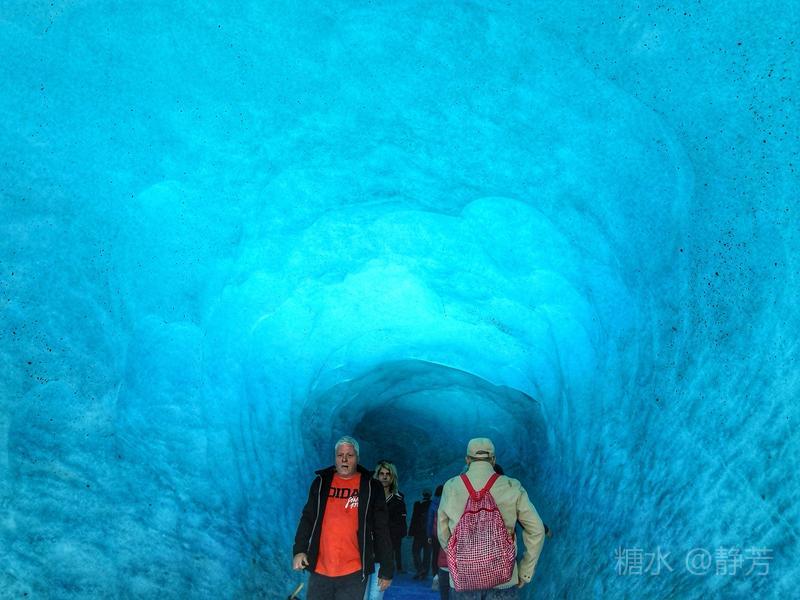 外面天气晴朗,洞壁就呈现出晶莹的蓝色。故称为蓝色冰洞。