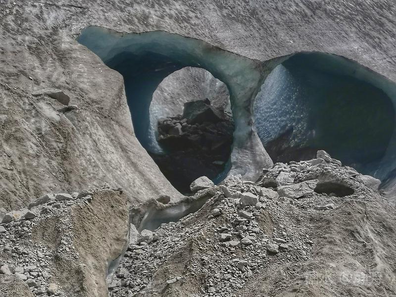 远远看见冰洞的模样,这二个是被废弃的洞口。 废弃冰洞上下都是千年的冰层。