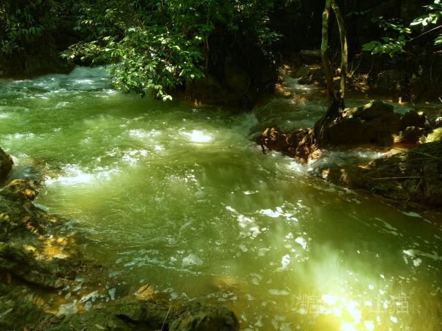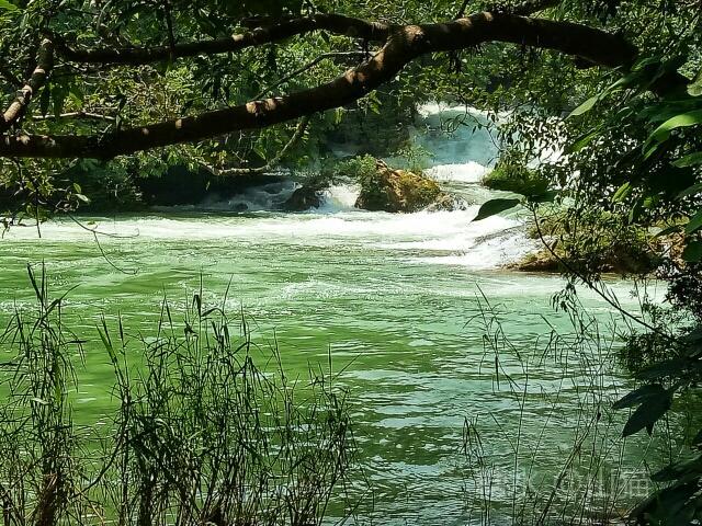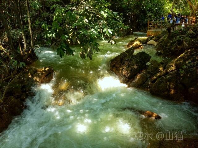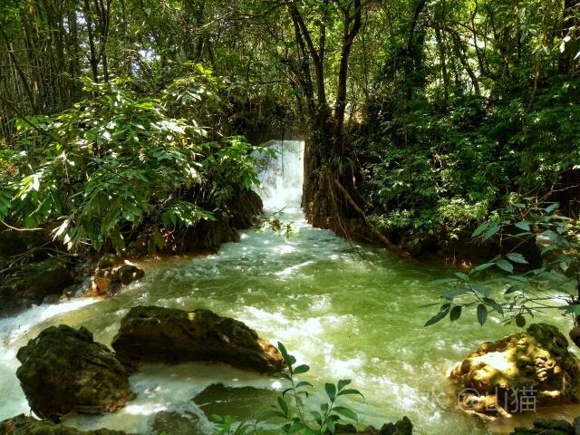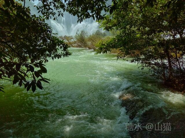 河水在花草掩映中,时急时缓,迂回曲折,层层跌落,最终汇聚成瀑。