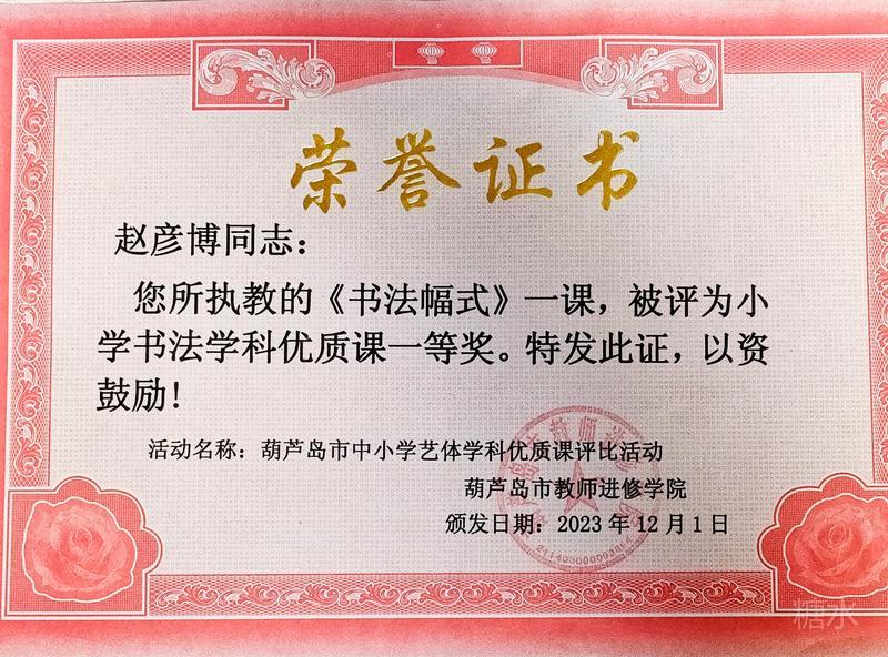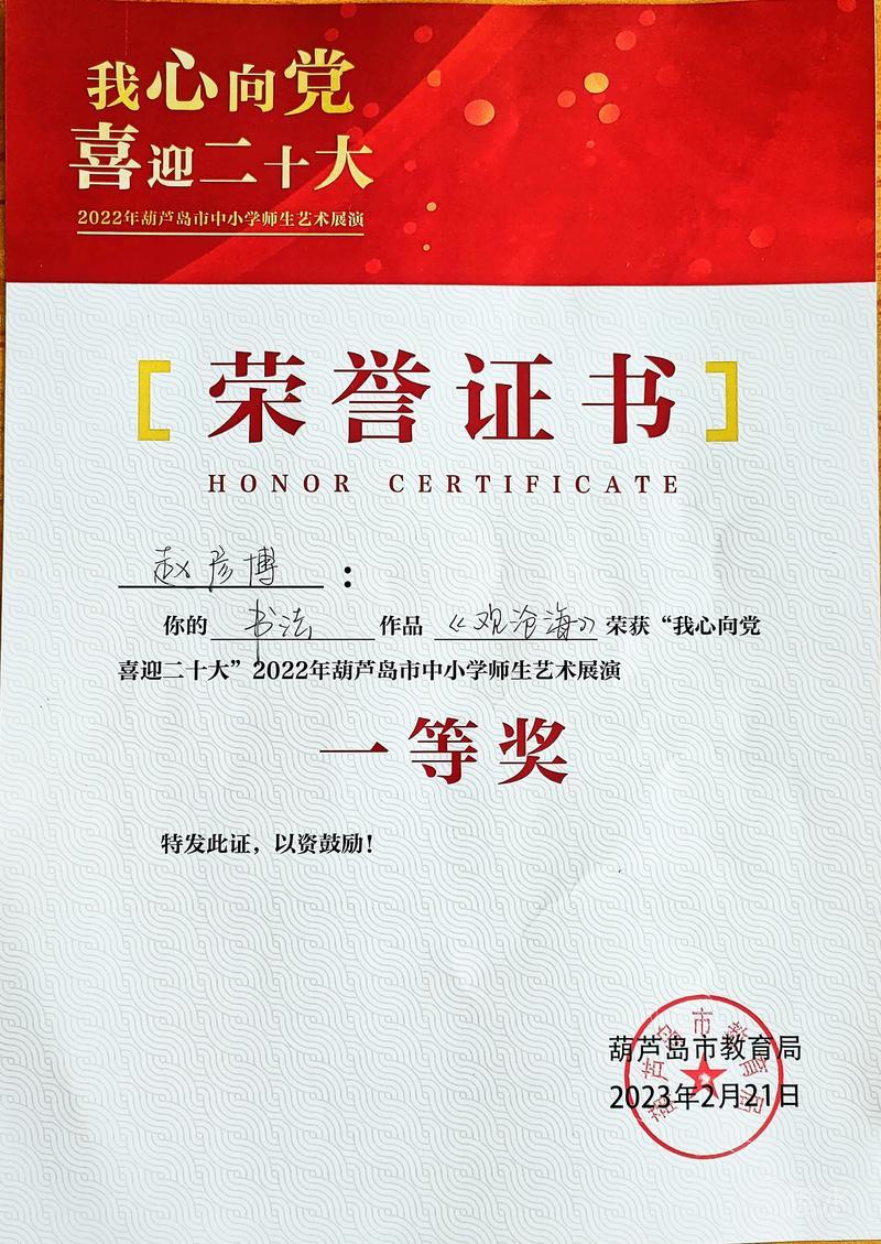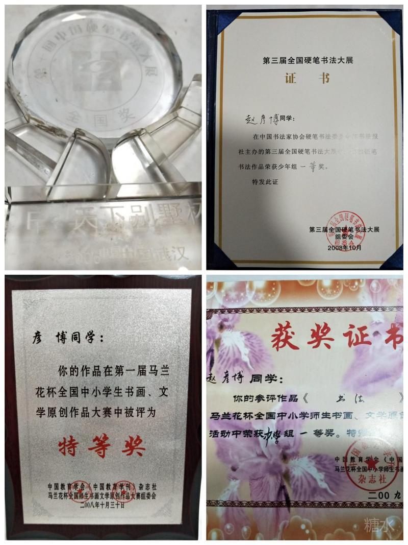 自幼拜辽西地区多位名师艺术启蒙并系统训练 2004年(9周岁)至2013年在全国各级专业赛事中连获头奖(楷书、隶书、行书)