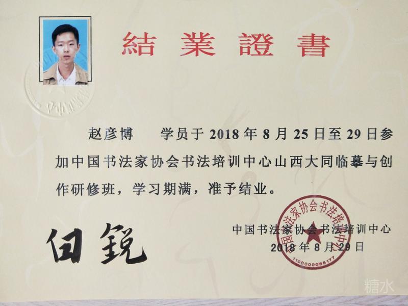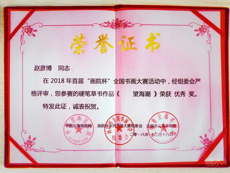 …… 2016年以成人组别成功入围品翰堂全国书法大赛(行书) 2018年再次斩获首届画院杯中国书画展全国奖项(草书)