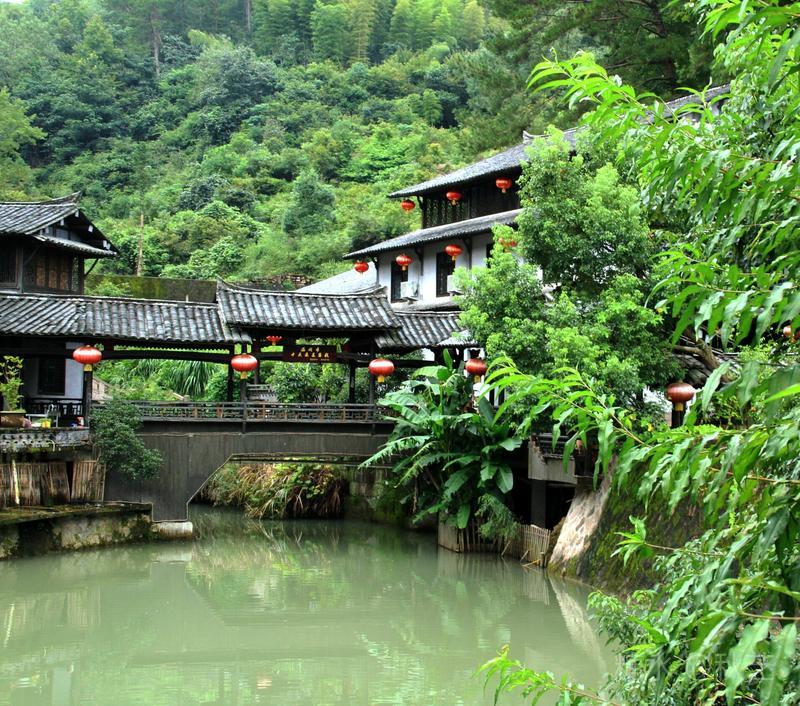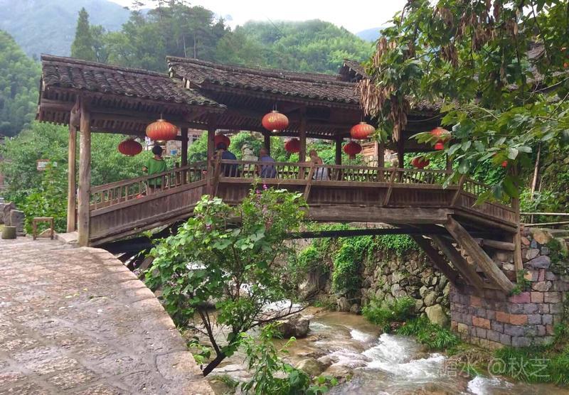 我们慢慢走进村子,一座小廊桥映入眼帘,三五个村民坐在桥上聊天,那种静谧,让人看着格外温馨,离廊桥不远就是一小广场,一块巨石上镌刻着“林坑”二字,抬头望去一幅山村立体画卷就展现在面前,一间间挂着大红灯笼的木结构房屋错落有致地依山而建,造型古朴简拙,随山势起伏,无序却自然。林坑村古、水美、山秀被誉为淹没在深山之中的一块璞玉。