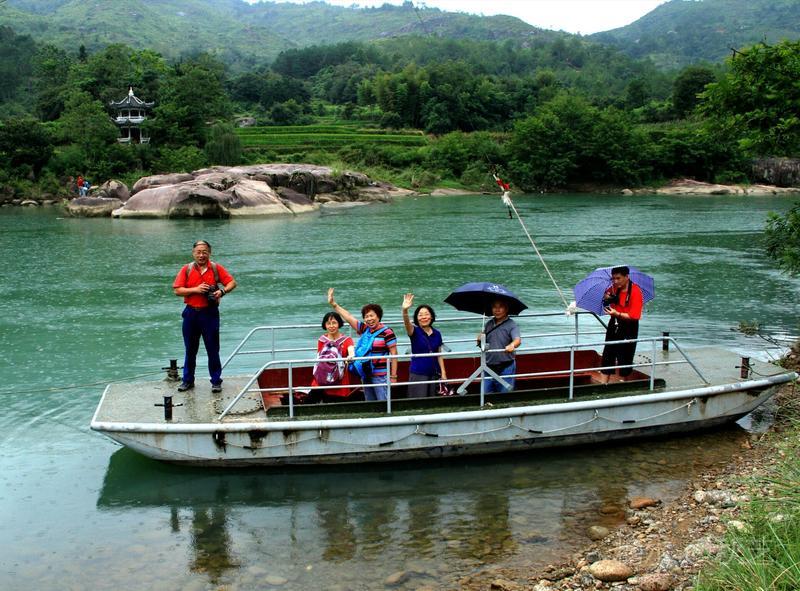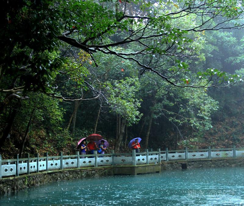 青龙湖风景区在永嘉县境内,距岩头中心景区8公里,是一处独具风韵的天然山水风光。青龙湖溪岸卵石垒垒,滩林簇簇,修竹绵绵。水形随岩石山态迂回曲折,从而形成了“人在画中,山在水中,水环山行”的山水风光,是楠溪江唯一的“溪水环流”之景。这里一年四季翠山倒影,碧波潋滟,是独特的青龙湖景观。