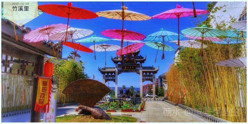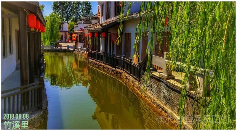2018-9-9竹溪里——一木制匾牌中这样写到: 北国玉苑 江南风光 商贾云集 富甲一方 文武盛地 源远流长 佳境天成 竹溪水乡