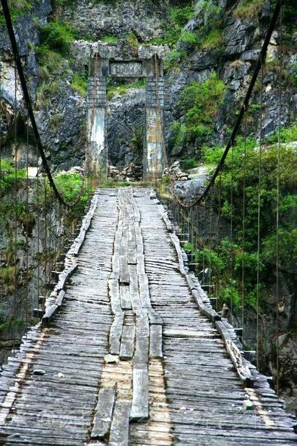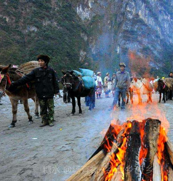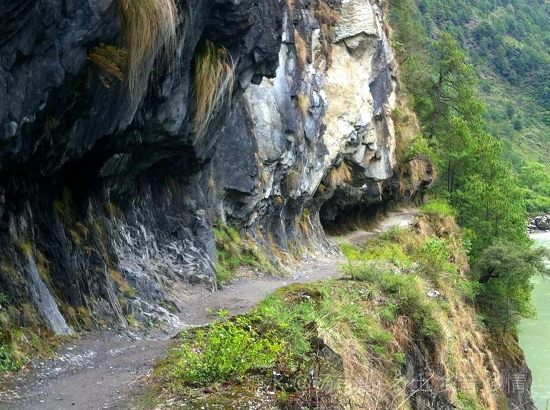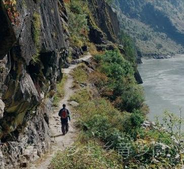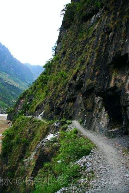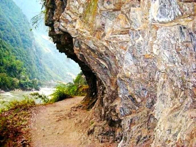 茶马古道一边是壁立千仭的山岩,一边是与江水落差几十米的险峻悬崖,崎岖不平,只够一人通行,贴着山体一侧行走,最宽处仅容两人交会,没有任何遮挡的另外一侧,脚下悬崖陡峭,怒江惊涛拍岸。 每行走一步,无不心惊胆战。