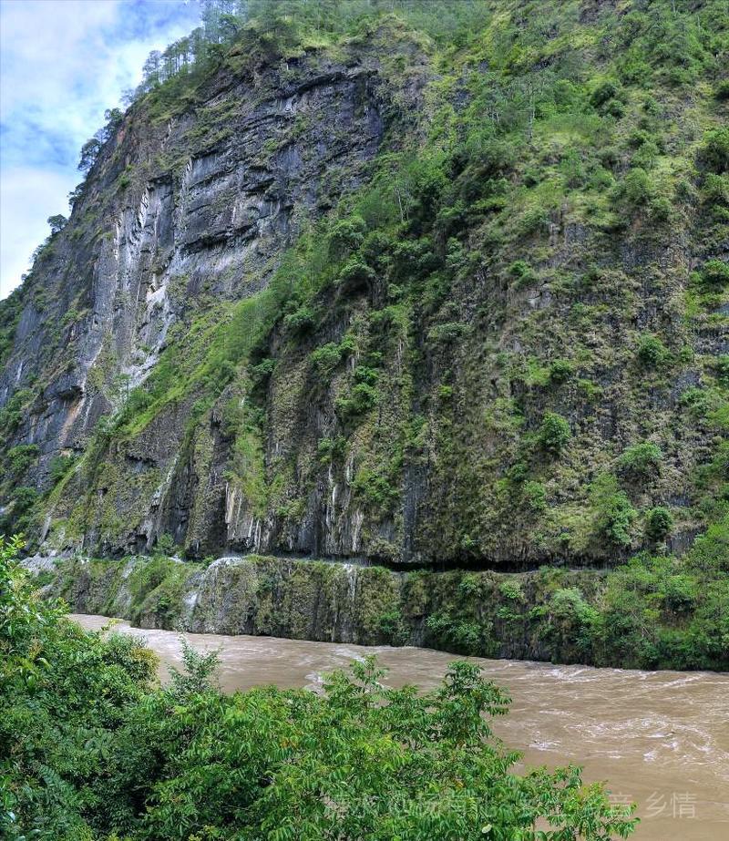 远远望去,一条在山体上开凿出的缝隙,在绿色中蜿蜒着,这便是通往雾里村的茶马古道。 隔江相望的雾里村看似很近,想进去却不易,只能沿着那条建在悬崖绝壁上的缝隙,步行半小时才能进入村子
