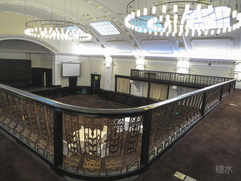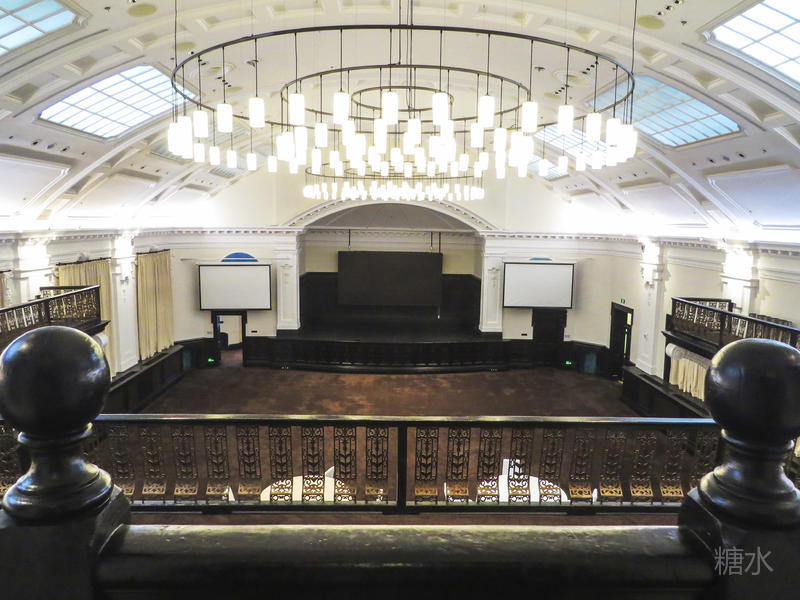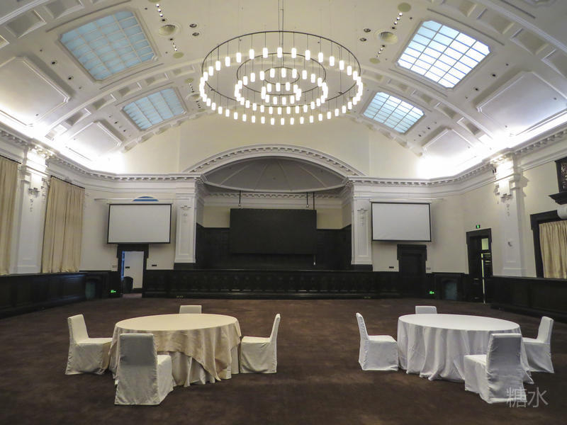 议事厅是总商会内最大的空间,高两层,二层为回廊,采用钢结构,正前方为舞台。