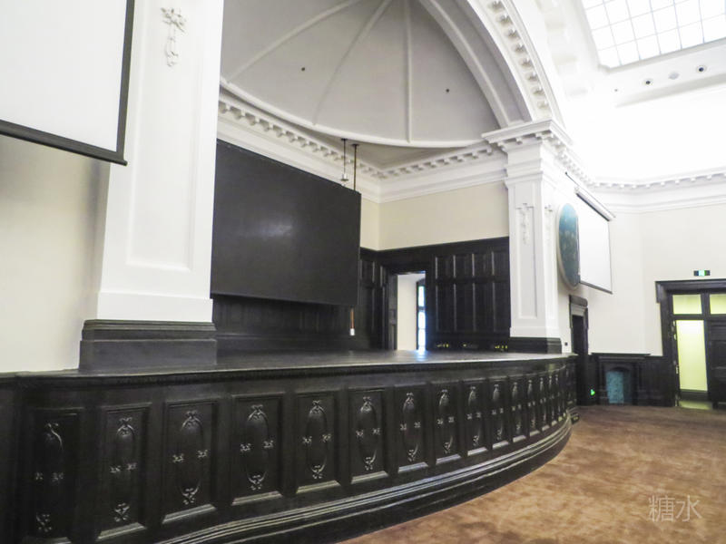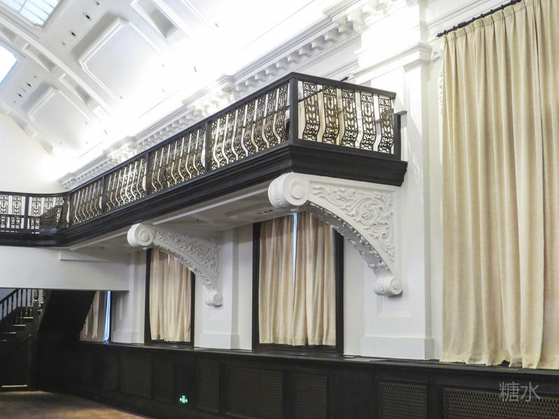 议事厅靠门口左右两边各有楼梯上至回廊。