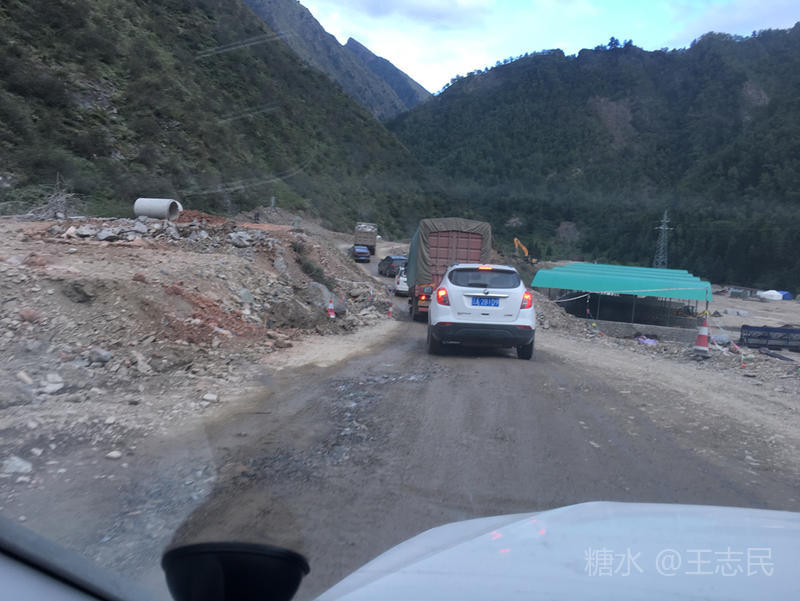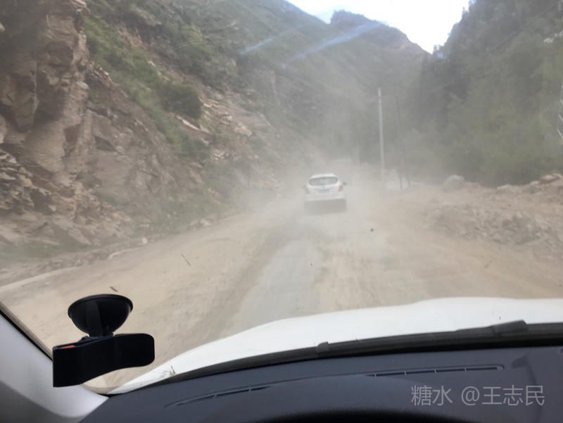 出草原去迭部的路上尘土飞扬,整条公路都在修路,车子只能开开停停。