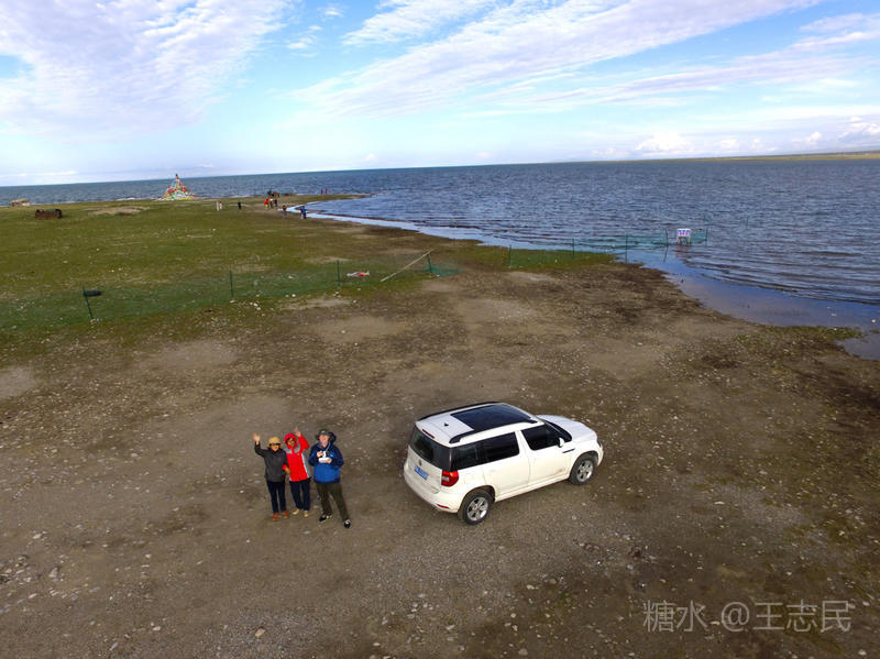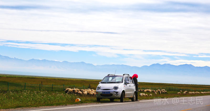 湖边小牧民,一辆QQ,一群羊。前几年还只是摩托呢,升级得真快……