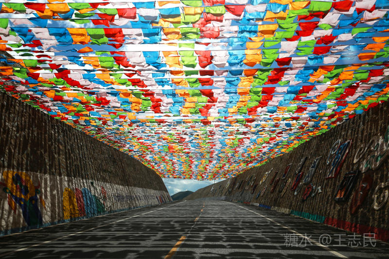 经幡把整条公路打扮得色彩斑斓,甚是好看