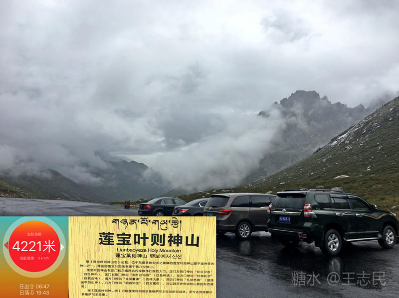 看来不让自驾车进来也不现实,进入景区,开了二十多公里才到停车场。这期间海拔高度在悄悄地升高。不知不觉地,当我们车停稳后看了一下高度表,着实把我们吓了一跳……