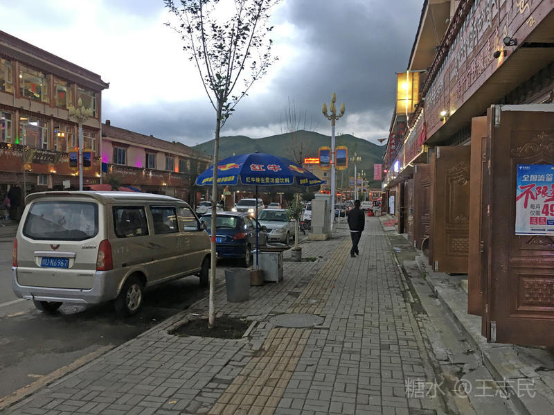 在红原转去阿坝的路上,整条公路都在修路,使公路只能断断续续的通车,直到晩上八点才找到预定的宾馆。没想到阿坝这个小县城还真有点洋气的,不是导航,这样没有半个中文字的宾馆怎么也找不到的。因为网上订的是中文名的宾馆。