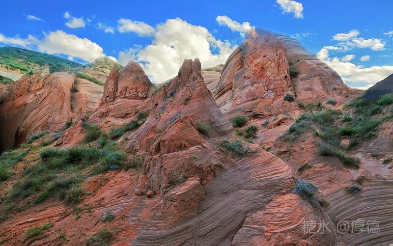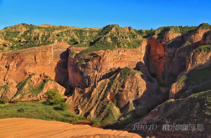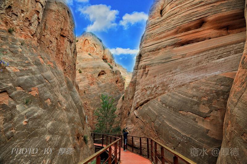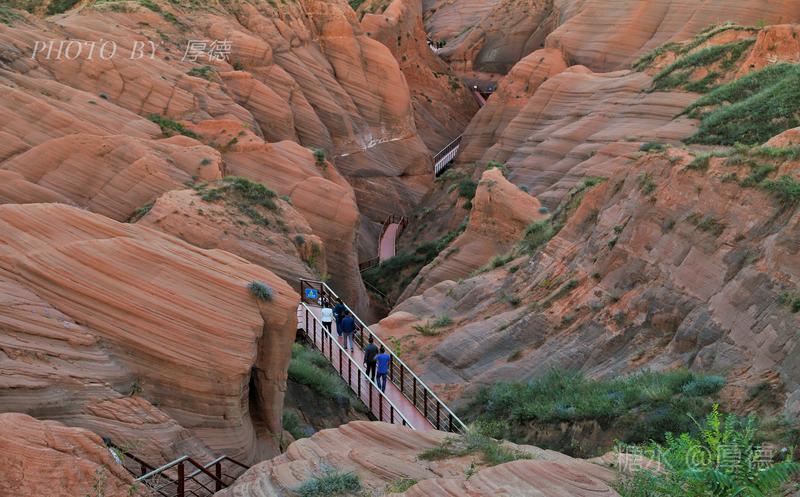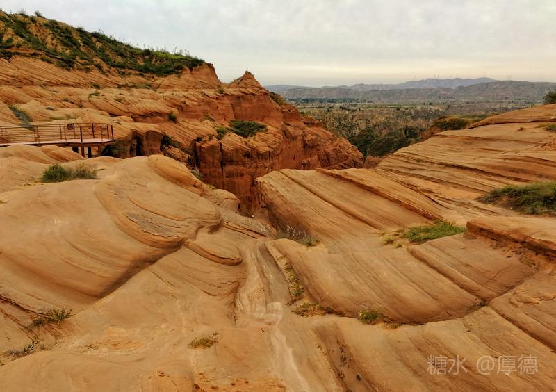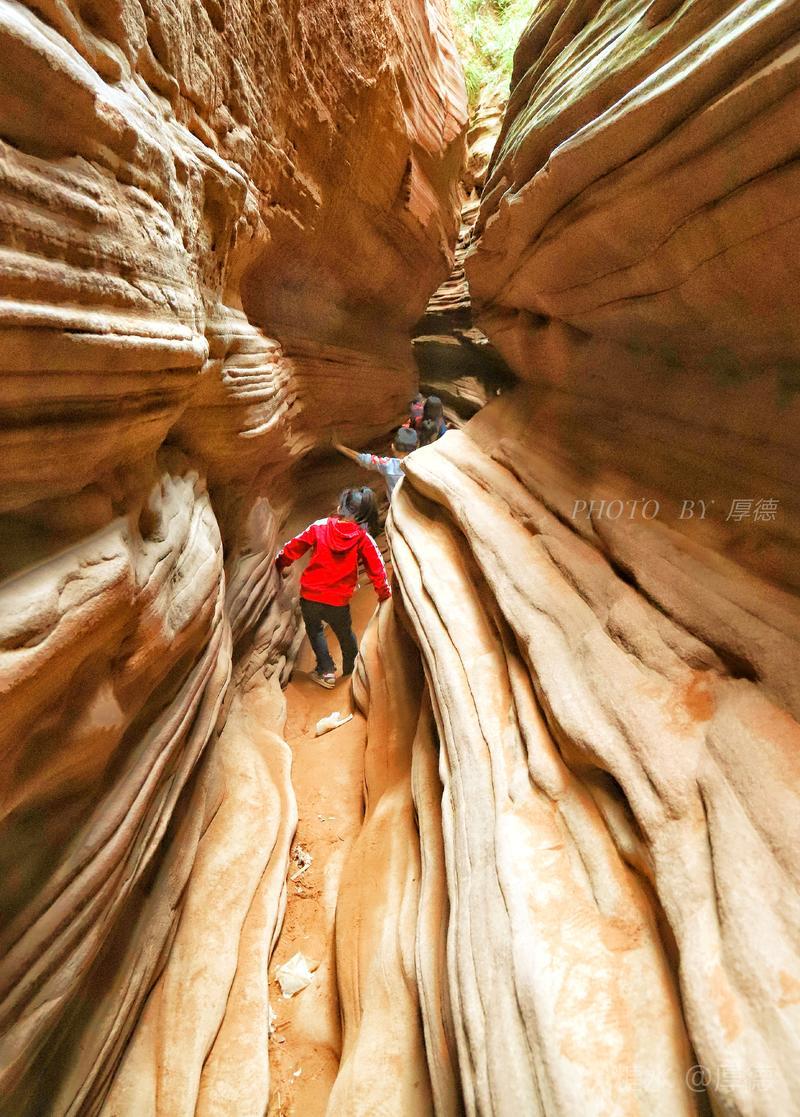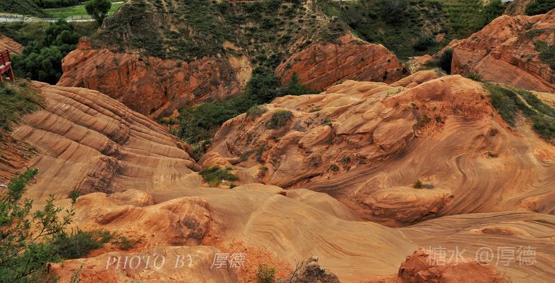 靖边波浪谷位于陕西省靖边县城东南22公里处,从县城需半小时车程。当走进波浪谷,你会惊奇地发现在陕北这个黄土覆盖的地方,竞然出现各式各样的奇观,那红色的石头像泥石流一样呈现出流水状,一圈圈,一坨坨,一弯弯的向沟壑中涌去,就像红色的泥浆一般纷涌汇聚,向沟底流淌。其景观令人震撼。 波浪谷展示的是由数百万年的风、水和时间雕琢砂岩而成的奇观世界。当参观完几个景区,你会有一种不枉此行的感觉。