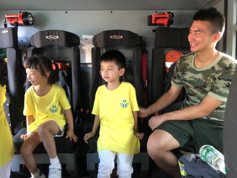 孩子们分批爬上驾驶室参观