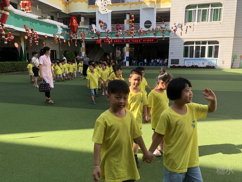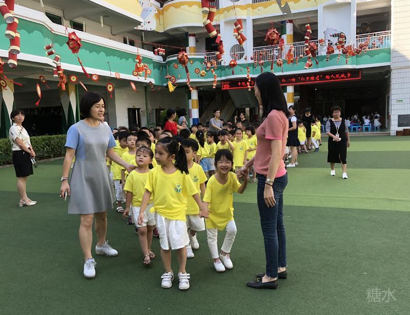 在园长、老师、阿姨、校医和保安叔叔的带领下安全抵达养正中学校内。
