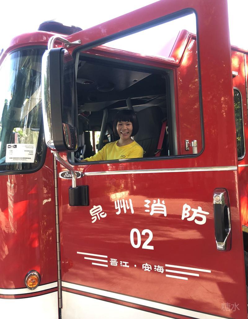 我也爬上🚒的驾驶室体验下😝😝😝
