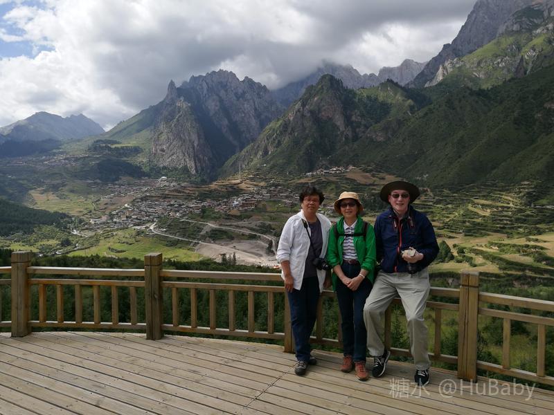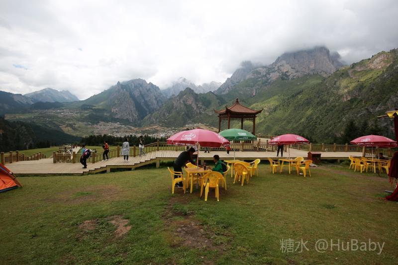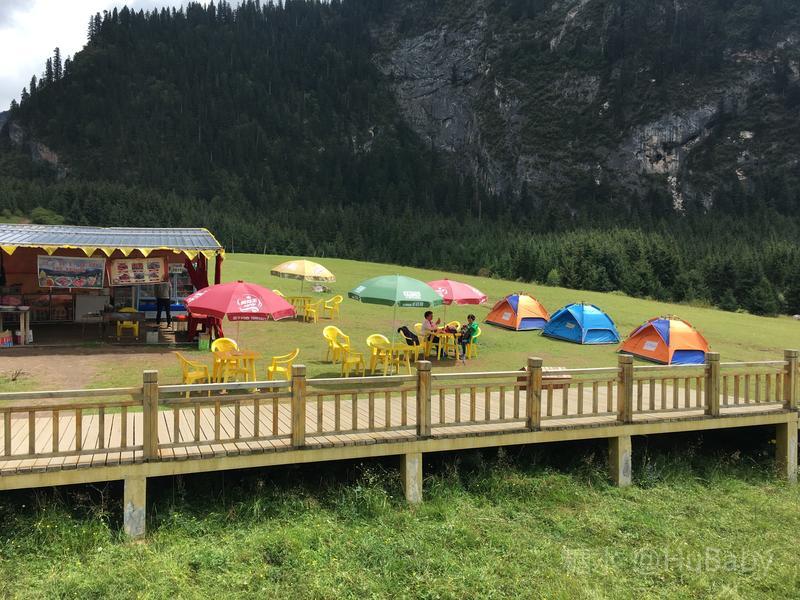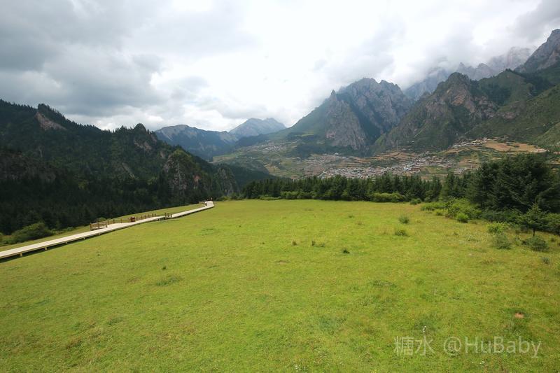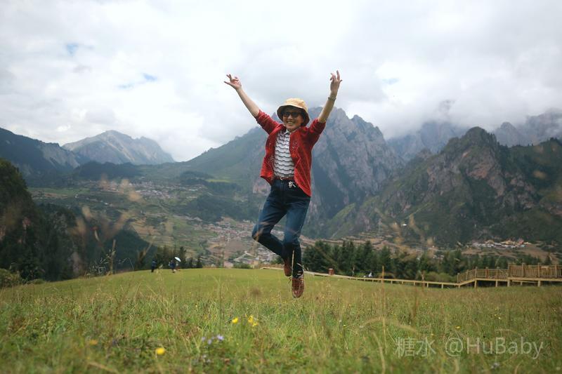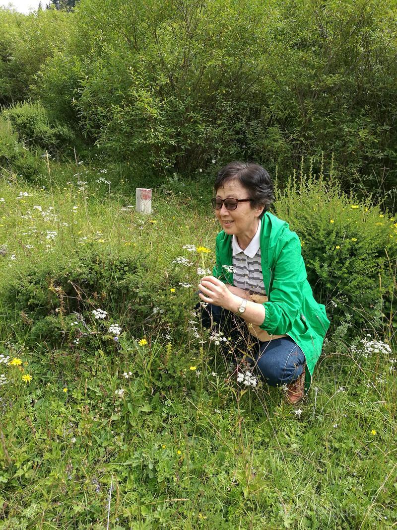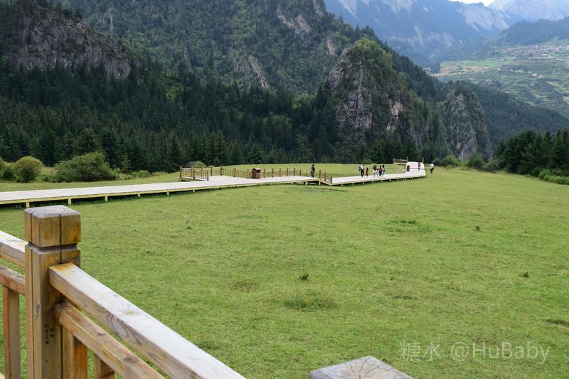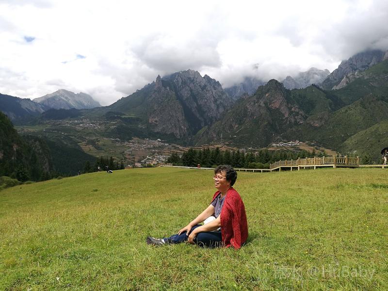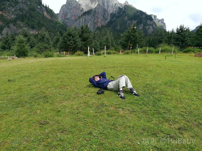 扎尕那山高坡陡少平地,但爬上南边几百级木台阶,有一块好几平方公里的绿草台地。满目蒼翠,遍地是花,恬静的环境让人兴奋。望着年轻人,我们也跃起撒野、甚至躺在綿綿绿草上,久久不起。