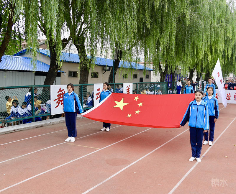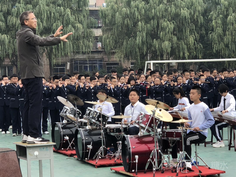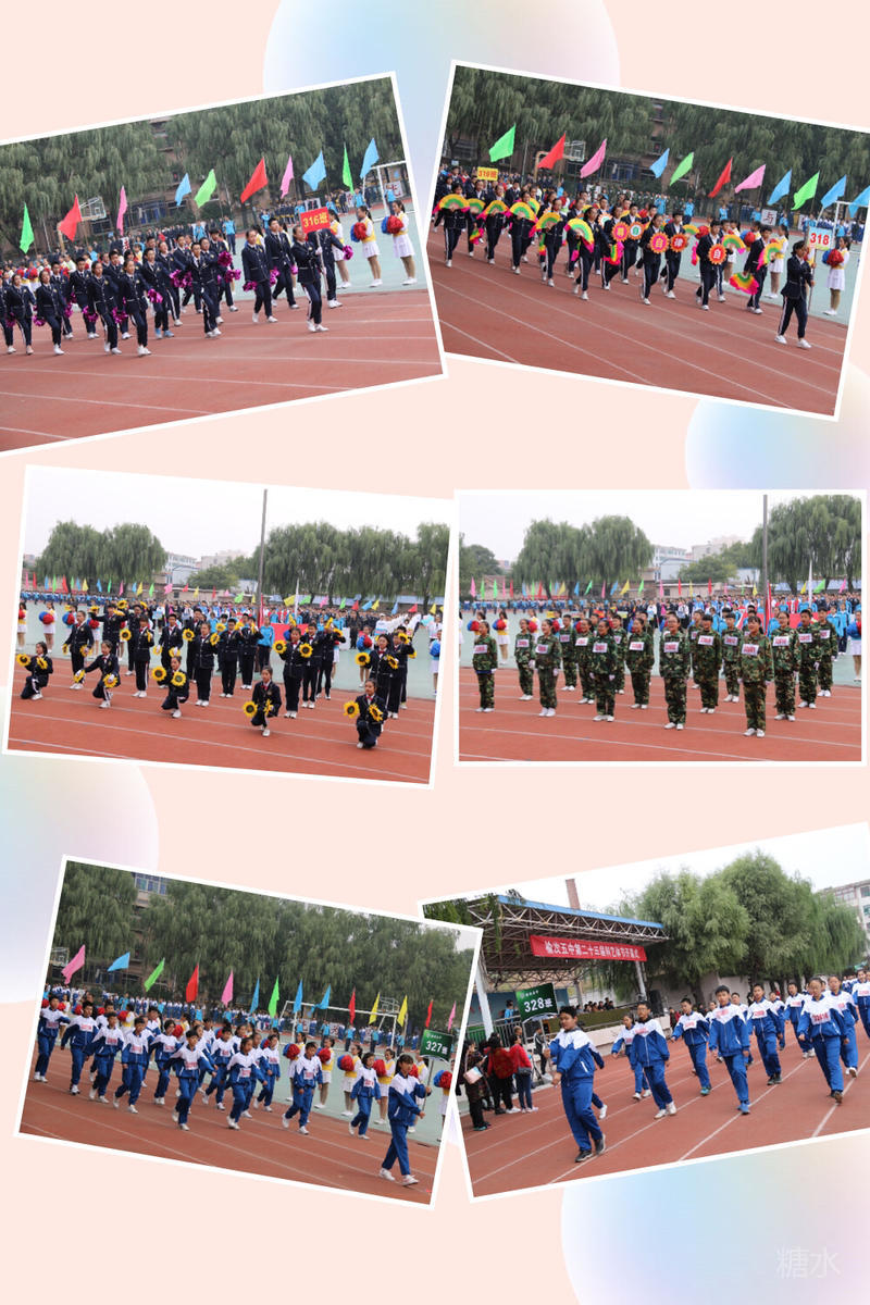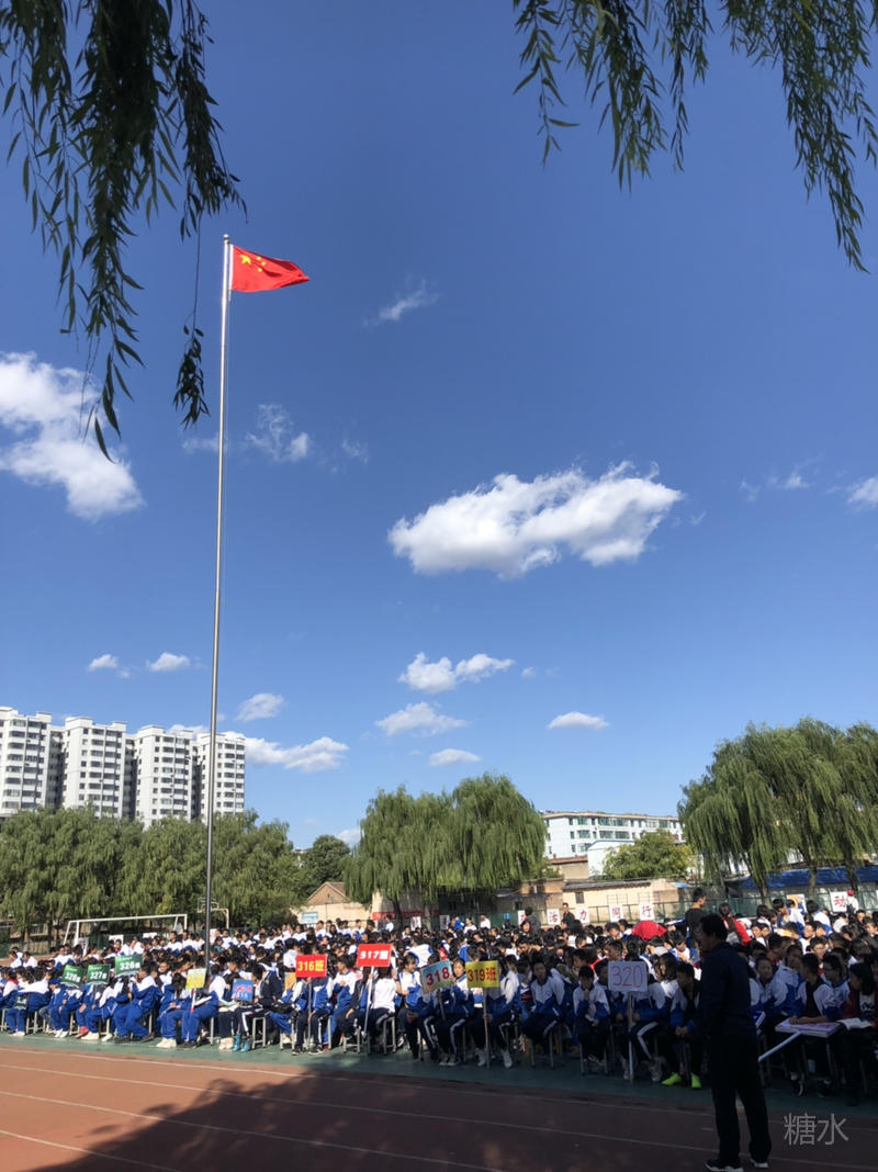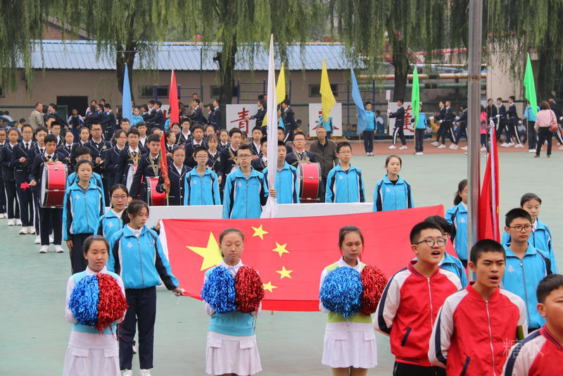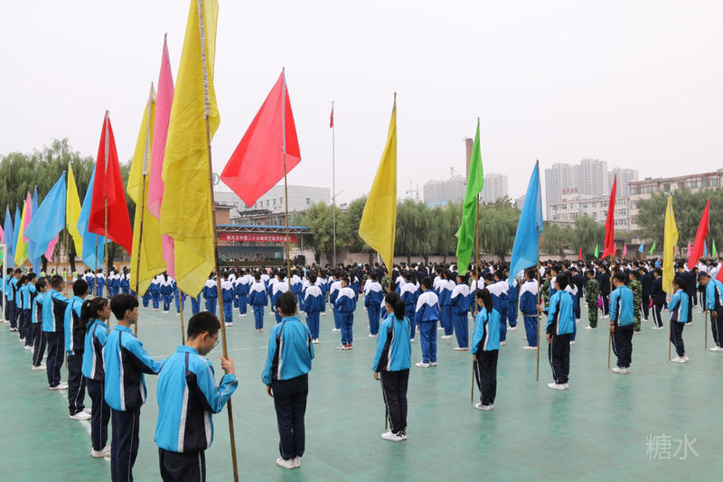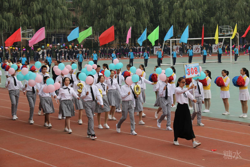 下午两点半,入场式正式开始。护旗手庄严地护送着五星红旗和五中校旗入场。军乐队奏响雄壮的乐曲,彩旗队和花束队为会场描绘了绚烂的色彩。