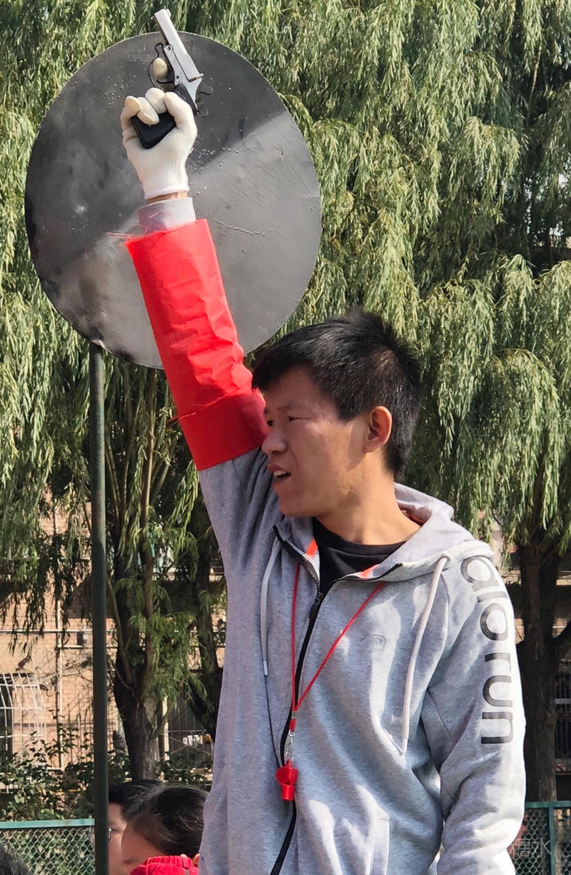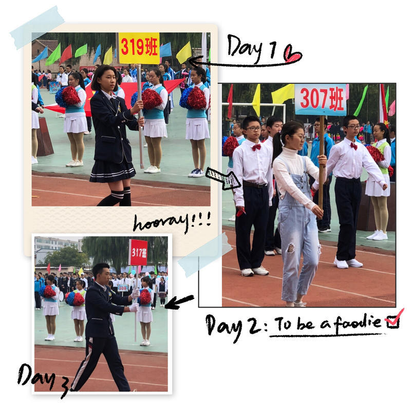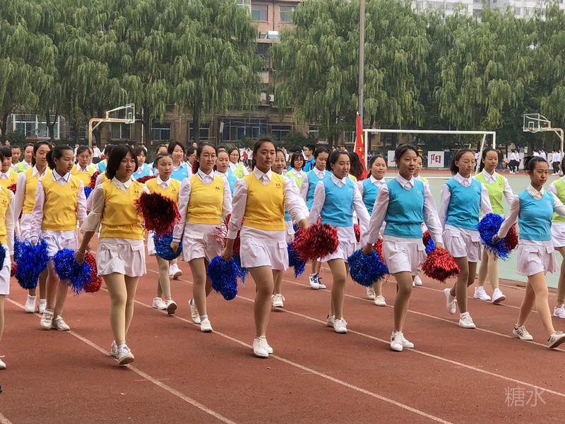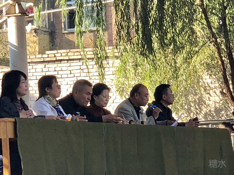 裁判员队伍的入场引发了学生们的阵阵喝彩。笑容满面,昂首挺胸的老师们此刻展示着别样的风采。
