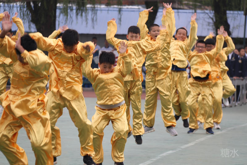初一的中华武术如雏鹰展翅,如猛虎下山。男孩子们激情澎湃,士气高涨,把开幕式的气氛推向高潮。