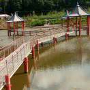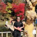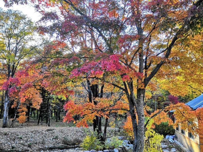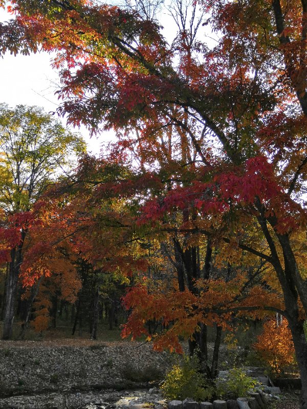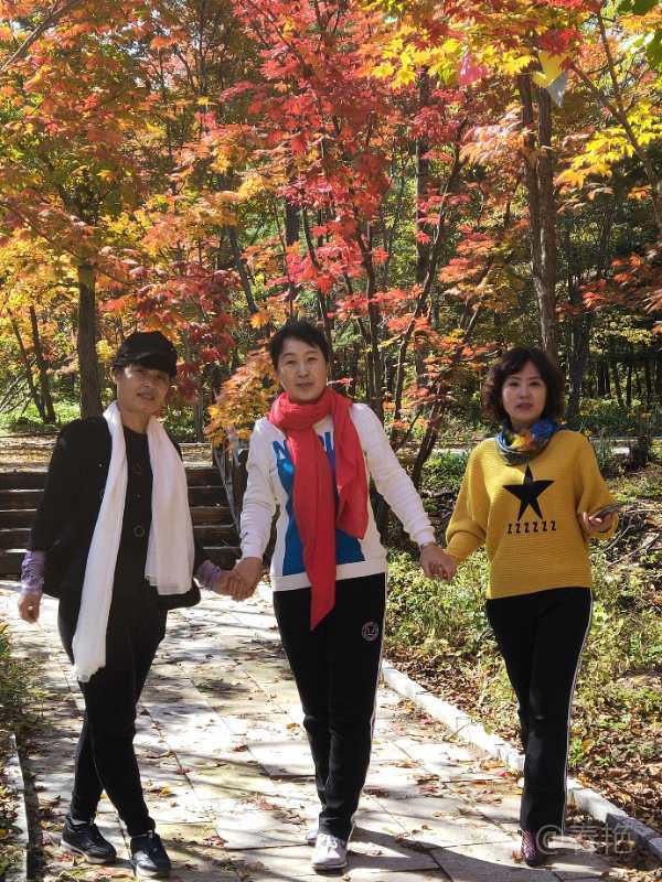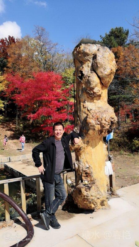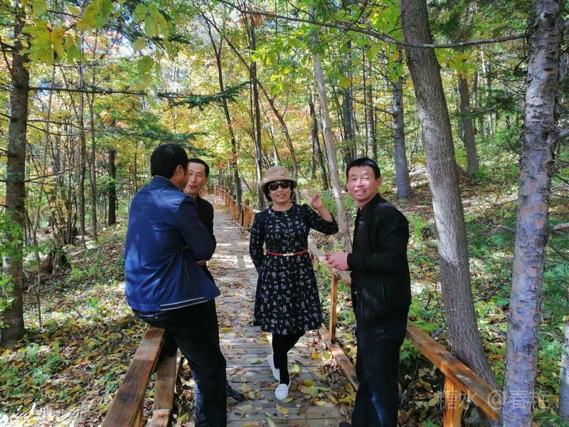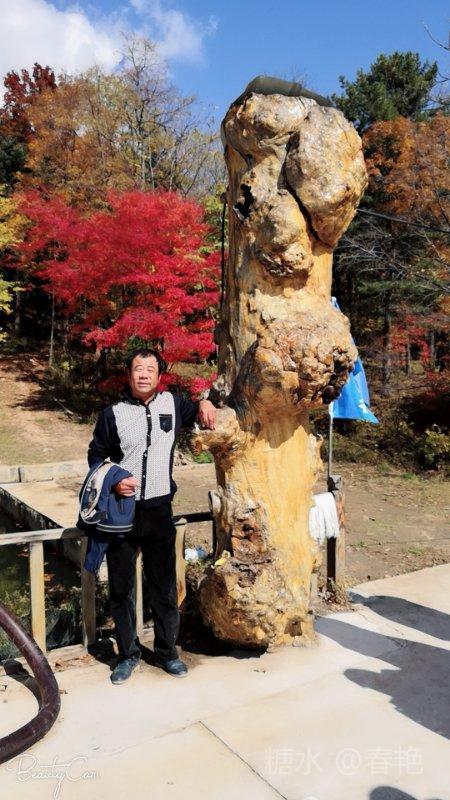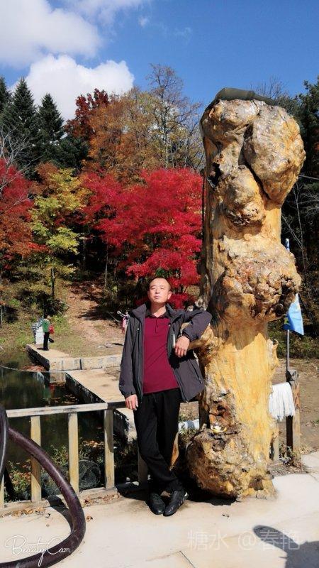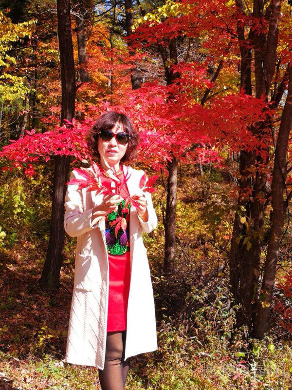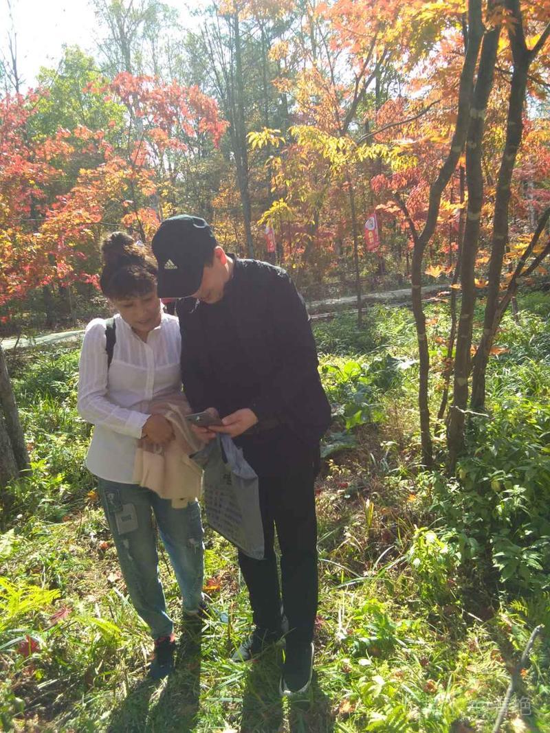 这里的大山是五彩山,像是画家画出的一幅水彩画,绿色的松树、红色的枫树、黄色的白桦树长满了山坡,大山就像穿了一条五彩斑澜的裙子,随着秋风翩翩起舞,许多树叶落下来发出“唰唰”地响声,好象在欢迎我们的到来。游客们都纷纷拍照、欣赏美景。